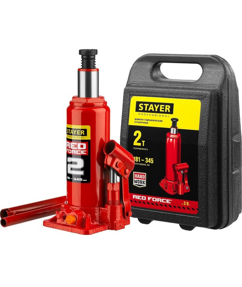 Домкрат бутылочный гидравлический STAYER RED FORCE 2т 181-345мм в кейсе [43160-2-K]