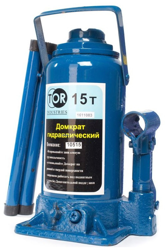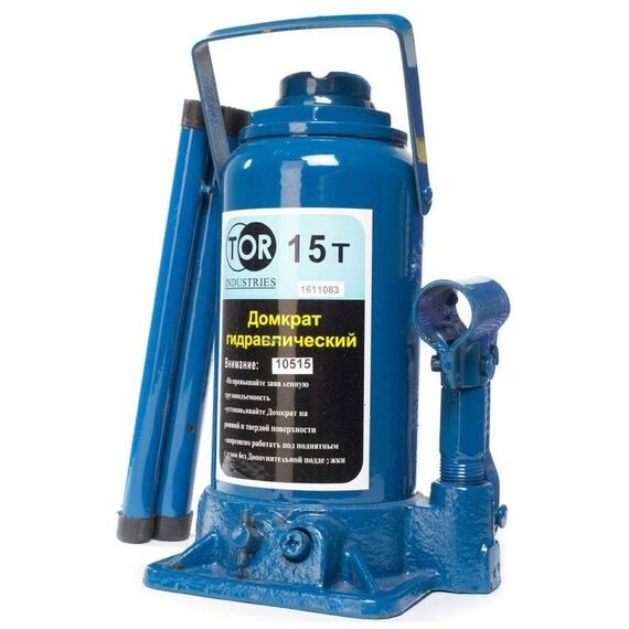 Гидравлический бутылочный домкрат TOR 10515 может эксплуатироваться как в помещении, так и на открытом воздухе. Данное приспособление имеет ручной привод и предназначен для подъема грузов массой до 15 тонн. Корпус инструмента изготовлен из высококачественного металла, окрашен краской и не подвержен коррозии. Домкрат прост в использование и не требует специального ухода, достаточно только очистить его от внешних загрязнений