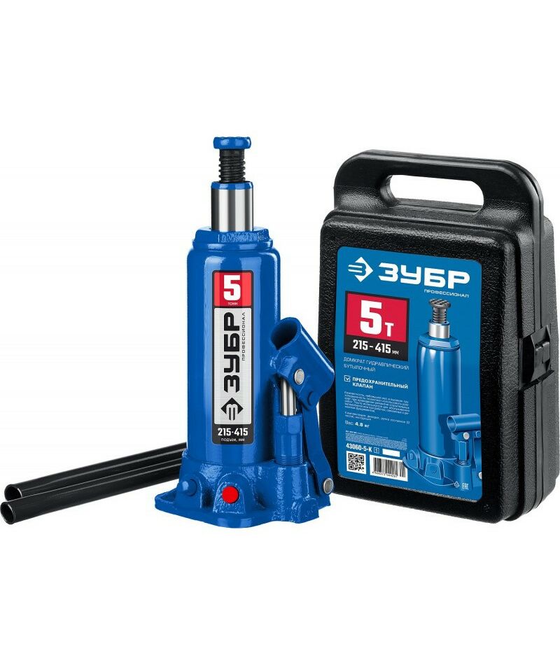 Домкрат бутылочный гидравлический в кейсе Зубр Профессионал 5т 215-415мм [43060-5-K_z01]