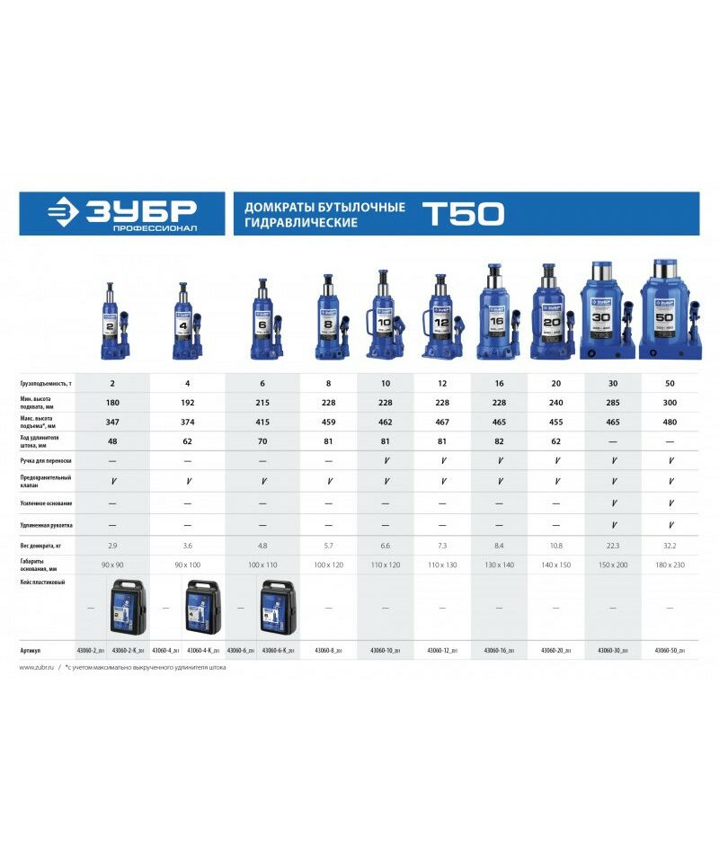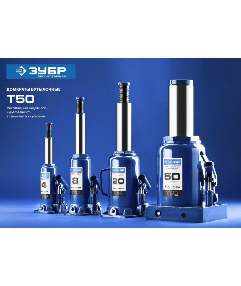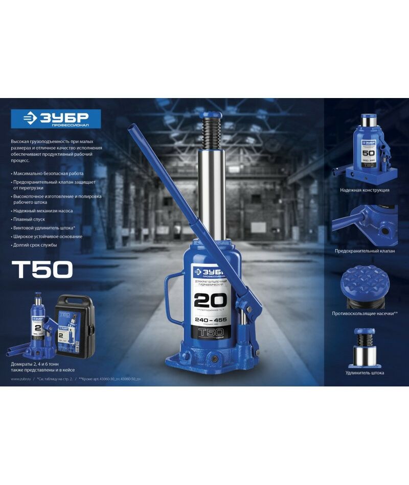 Домкрат бутылочный гидравлический Зубр Профессионал 6т 215-415мм в кейсе [43060-6-K]