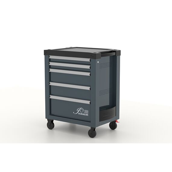 Верхняя часть с полезной рабочей поверхностью размером 525х475 мм изготовлена из ударопрочного ABS-пластика и имеет держатель отверток. На боковых стенках предусмотрена перфорация для размещения держателей инструментов. Для перемещения по территории цеха тележка оснащается двумя неповоротными и двумя поворотными (одно со стопором) колесами диаметром 100 мм и с покрытием из термопластичного эластомера шириной 32 мм, а также ручкой. Возможно дооснащение полками, перфорированной панелью, крючками и другими аксессуарами.