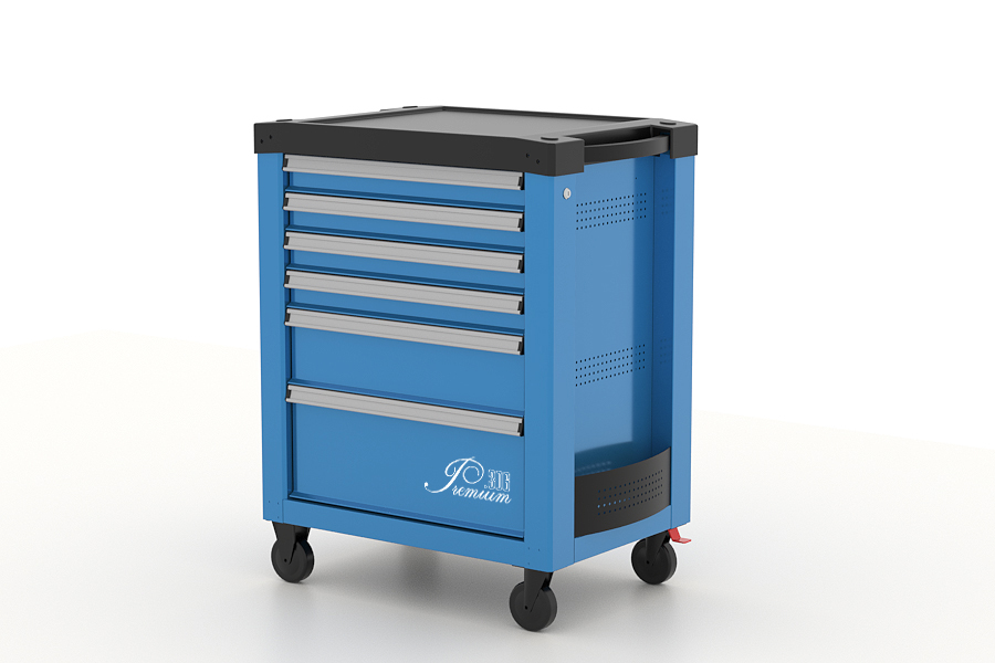 Верхняя часть с полезной рабочей поверхностью размером 525х475 мм изготовлена из ударопрочного ABS-пластика и имеет держатель отверток. На боковых стенках предусмотрена перфорация для размещения держателей инструментов. Для перемещения по территории цеха тележка оснащается двумя неповоротными и двумя поворотными (одно со стопором) колесами диаметром 100 мм и с покрытием из термопластичного эластомера шириной 32 мм, а также ручкой. Возможно дооснащение полками, перфорированной панелью, крючками и другими аксессуарами.
