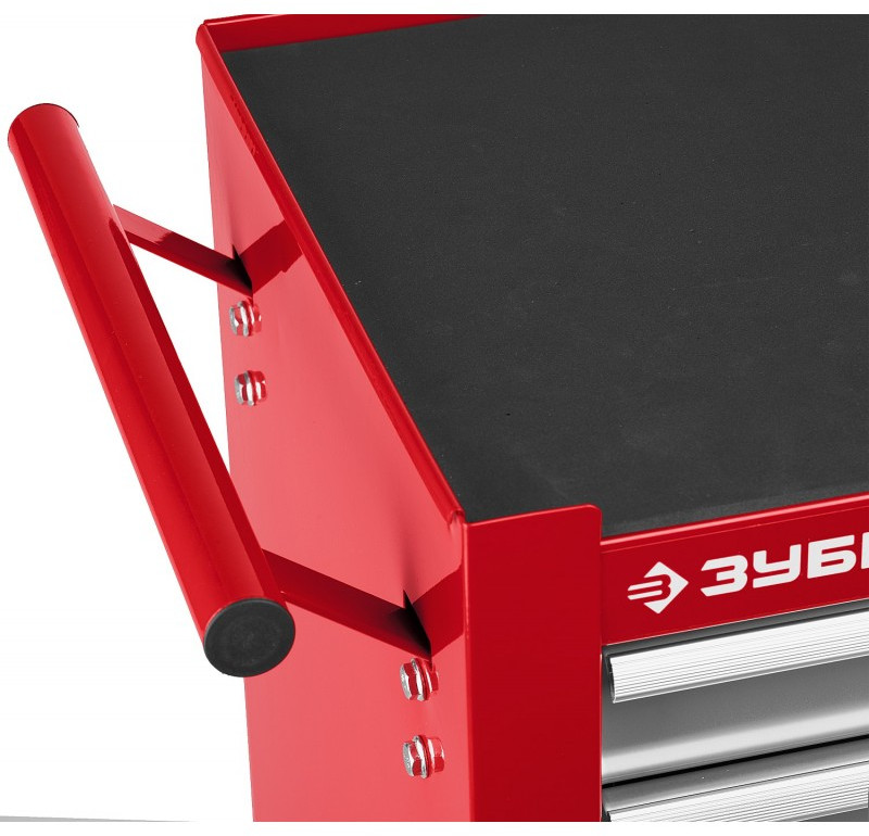 - Профессиональная тележка ЗУБР позволит Вам комфортно организовать рабочее место с легким доступом ко всем инструментам. При необходимости Вы можете транспортировать его, а так же использовать ключи для безопасности