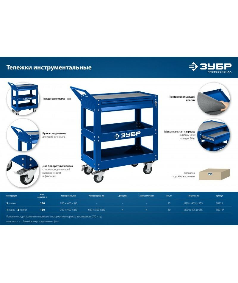 Тележка ЗУБР позволит комфортно организовать рабочее место с легким доступом ко всем инструментам.