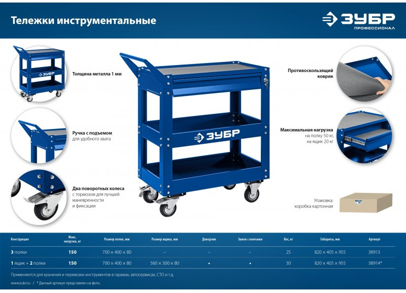 Тележка ЗУБР позволит комфортно организовать рабочее место с легким доступом ко всем инструментам.