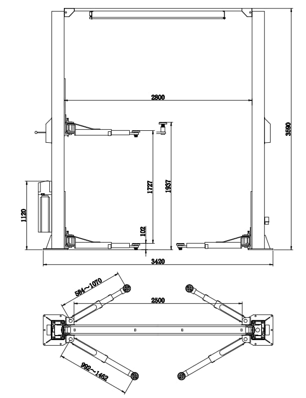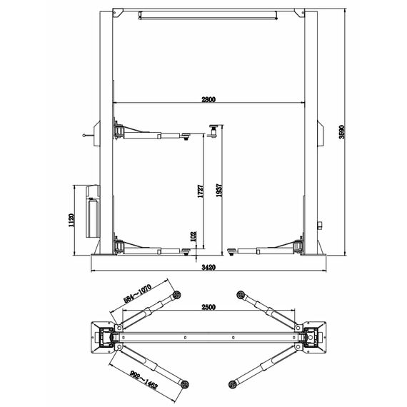 | Длина передних лап | 584-1070 мм | Ширина между стоек | 2800 мм |