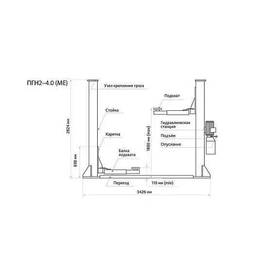 | Грузоподъемность | 4000 кг | Снятие стопоров | на колонне |