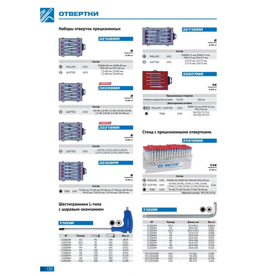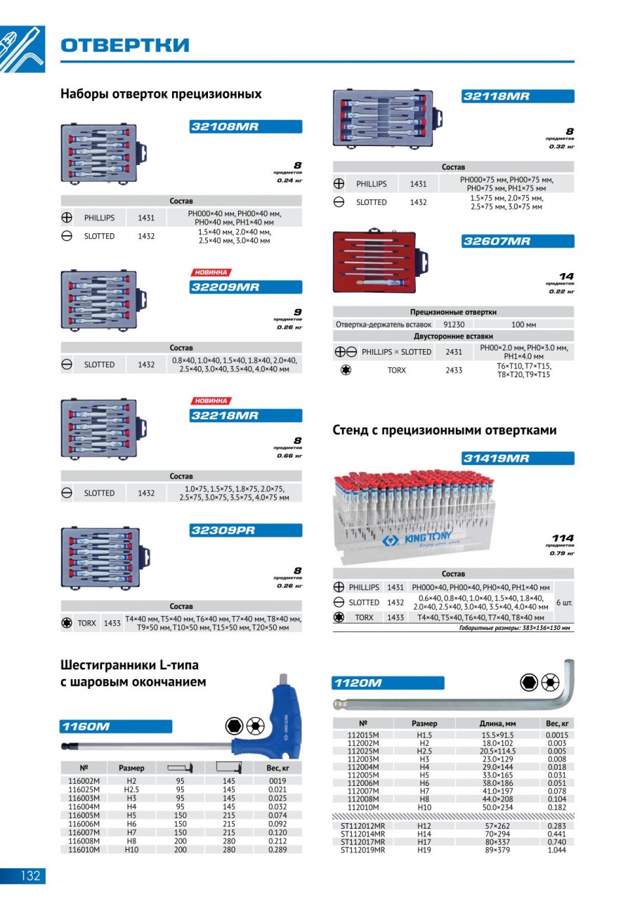Стенд с прецизионными отвертками King Tony 31419MR серии 1431, 1432, 1433, 114 предметов