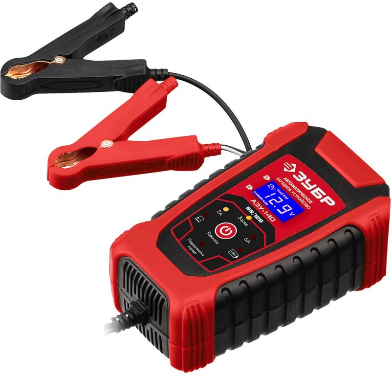Автоматическое зарядное устройство предназначено для зарядки аккумуляторных батарей легковых автомобилей и мотоциклов, снегоходов, катеров (лодок), газонокосилок, тракторов, гидроциклов и т.д. Зарядные устройства ЗУБР управляются с помощью микропроцессора. Данные устройства обладают высокой эффективностью и имеют защиту от ошибок, которые может допустить пользователь. Микропроцессор зарядного устройства оценивает состояние батареи и соответствующим образом устанавливает силу зарядного тока и напряжение (в зависимости от типа АКБ и её состояния). Это позволяет наиболее эффективно зарядить аккумулятор и продлить срок его службы.