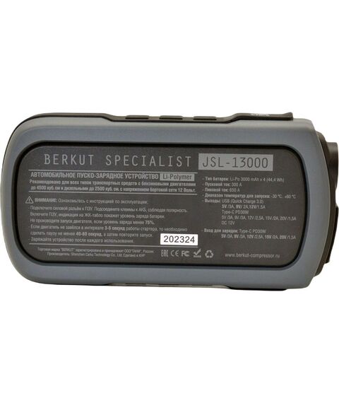 | Особенности | Мощный выход для запуска 12-вольтового бензинового двигателя до 4.5 л. и дизель до 2.5 л. Мощный светодиодный фонарь с тремя режимами работы. |