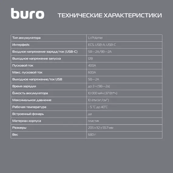 | Емкость встроенного аккумулятора | 10000 мAч |