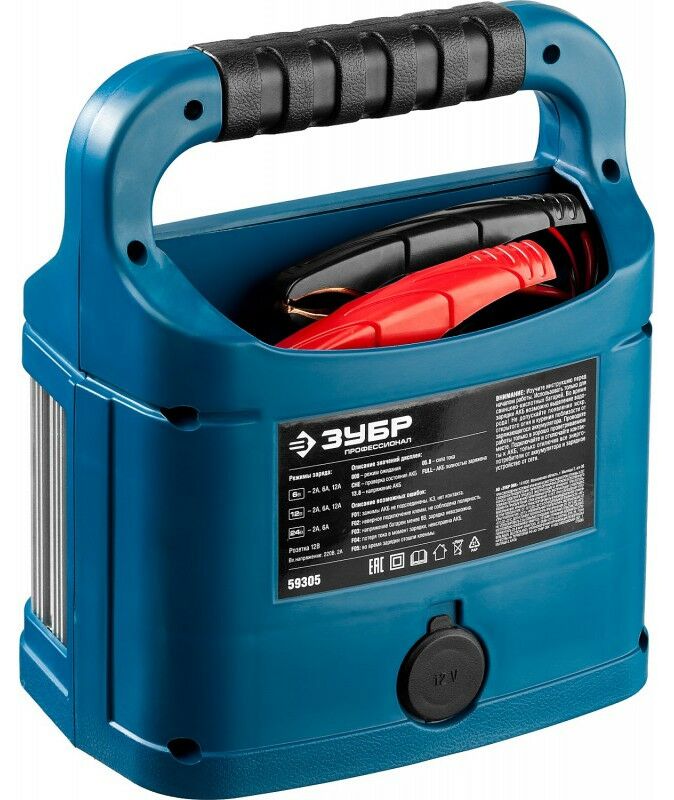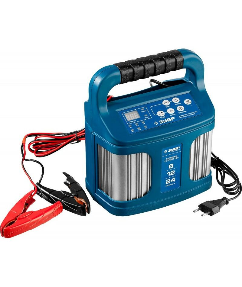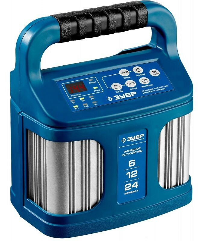 - Использование. Интеллектуальное зарядное устройство предназначено для зарядки аккумуляторных батарей легковых и грузовых автомобилей, мотоциклов, снегоходов, катеров (лодок), газонокосилок, тракторов, гидроциклов и т.д. Зарядные устройства ЗУБР управляются с помощью микропроцессора. Данные устройства обладают высокой эффективностью и имеют защиту от ошибок, которые может допустить пользователь. Микропроцессор зарядного устройства оценивает состояние батареи и соответствующим образом устанавливает силу зарядного тока и напряжение (в зависимости от типа АКБ и её состояния). Это позволяет наиболее эффективно зарядить аккумулятор и продлить срок его службы.