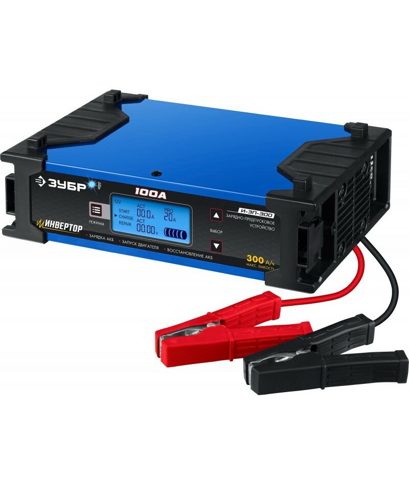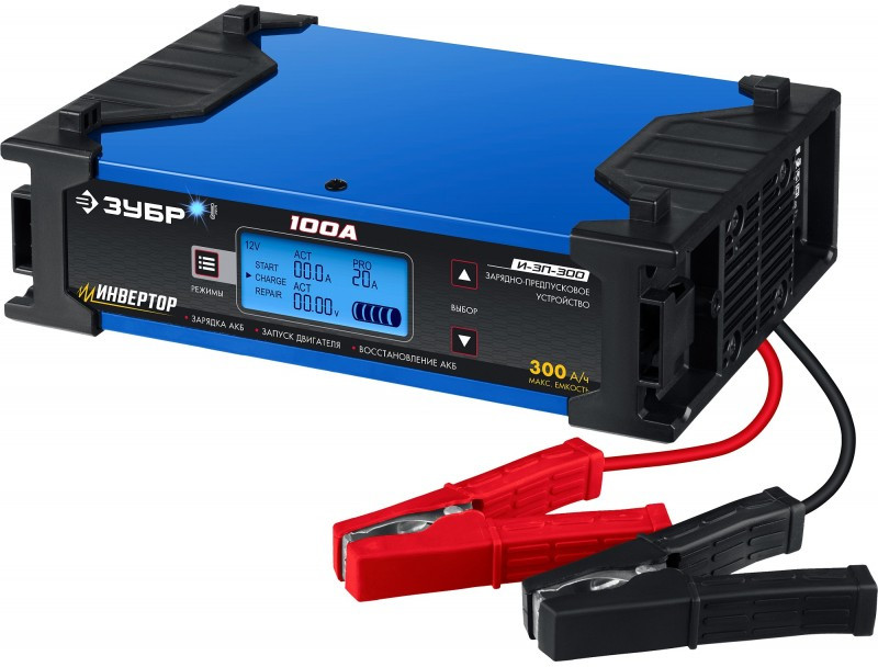 Инверторное зарядно-предпусковое устройство предназначено для зарядки аккумуляторных батарей легковых и грузовых автомобилей, мотоциклов, снегоходов, катеров (лодок), газонокосилок, тракторов, гидроциклов и т.д. Зарядные устройства ЗУБР управляются с помощью микропроцессора. Данные устройства обладают высокой эффективностью и имеют защиту от ошибок, которые может допустить пользователь. Микропроцессор зарядного устройства оценивает состояние батареи и соответствующим образом устанавливает силу зарядного тока и напряжение (в зависимости от типа АКБ и её состояния). Это позволяет наиболее эффективно зарядить аккумулятор и продлить срок его службы.