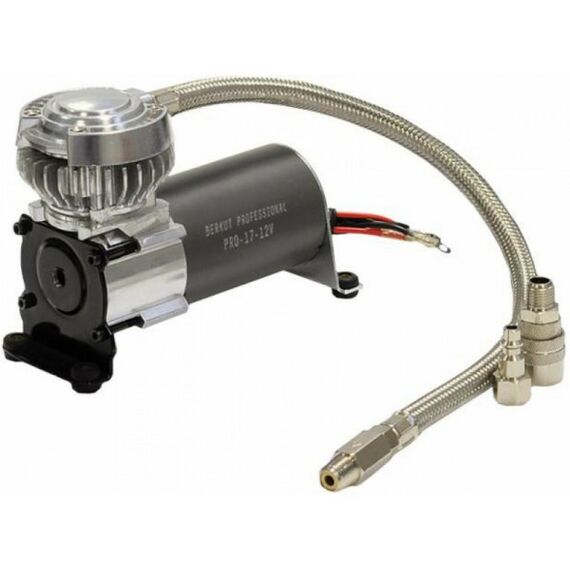 Автокомпрессор высокого давления для стационарной установки в автомобиль с двигателем постоянного тока коллекторного типа с повышенным КПД. Для построения пневматической системы компрессор должен быть подключен к ресиверу (резервуару для сжатого воздуха; приобретается отдельно) при помощи шланга высокого давления с обратным клапаном. Пневматическая система может выполнять различные задачи, такие как пневматические блокировки, звуковой сигнал (пневмогудок) и т.п.