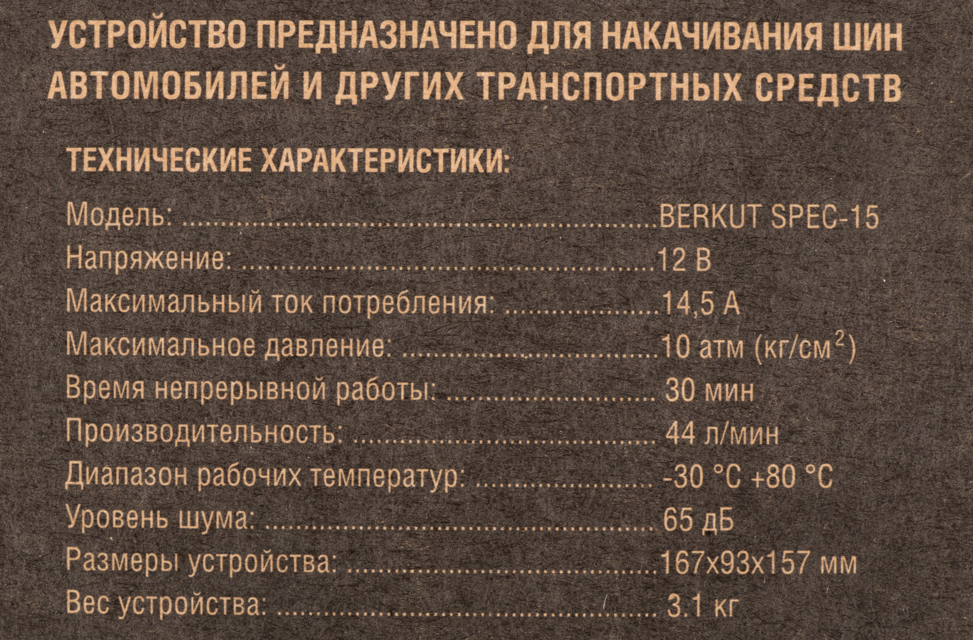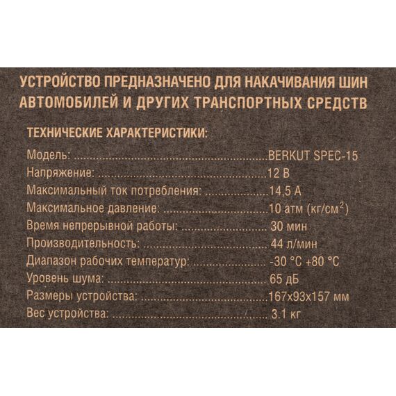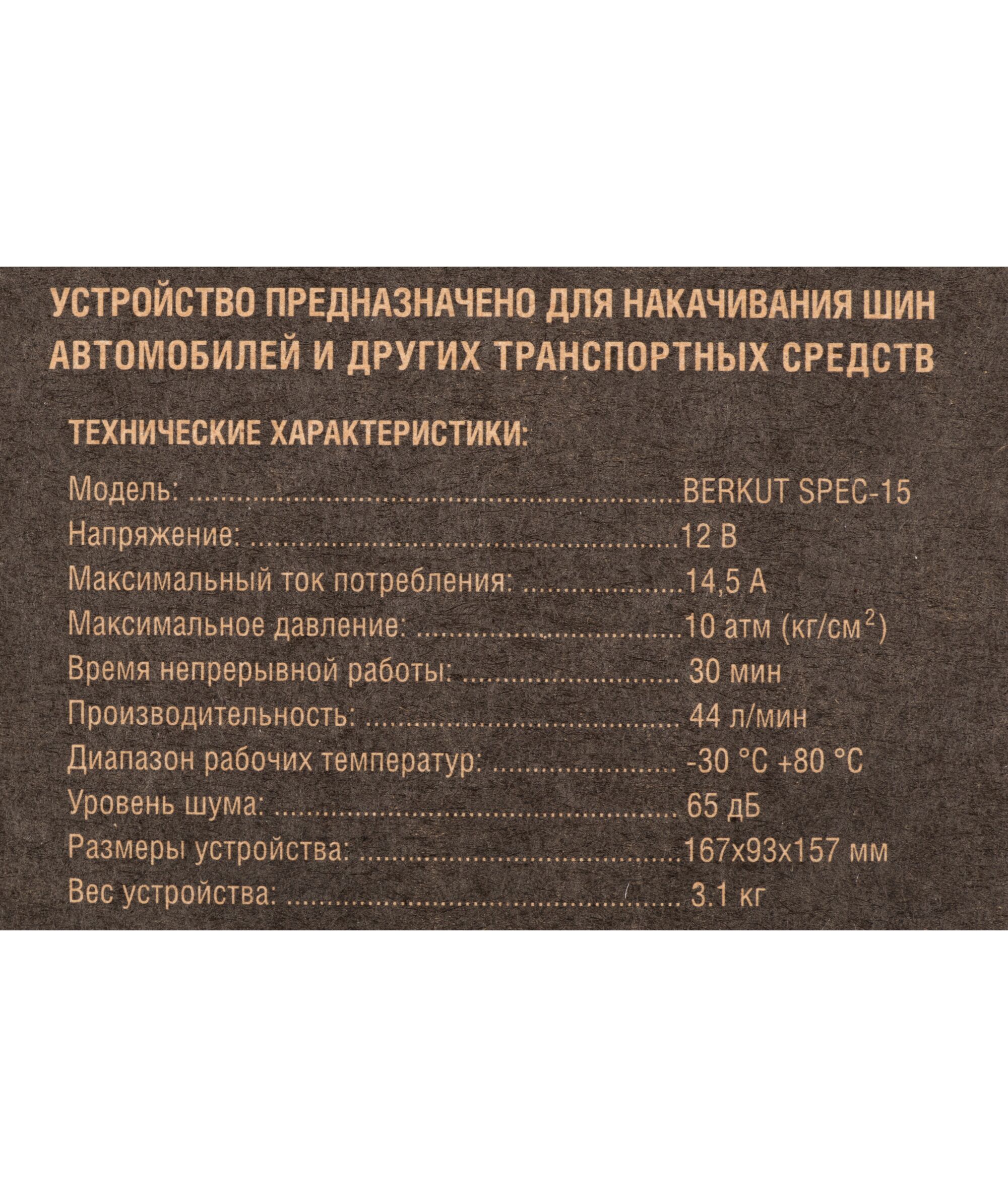 Автомобильный компрессор BERKUT SPEC-15 44л/мин шланг 1.2м