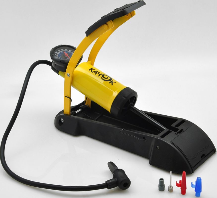 | Особенности | Ножной насос с облегченным рабочим цилиндром и увеличенным ходом поршня идеально подходят для подкачки шин легковых автомобилей, велосипедов, мотоциклов, квадроциклов и различных надувных изделий. Устойчивая платформа из высокопрочного пластика, точный манометр и набор из четырех переходников. |