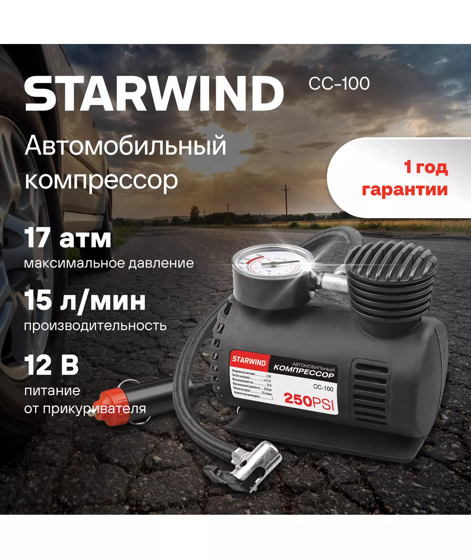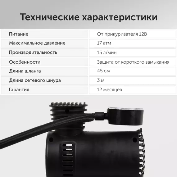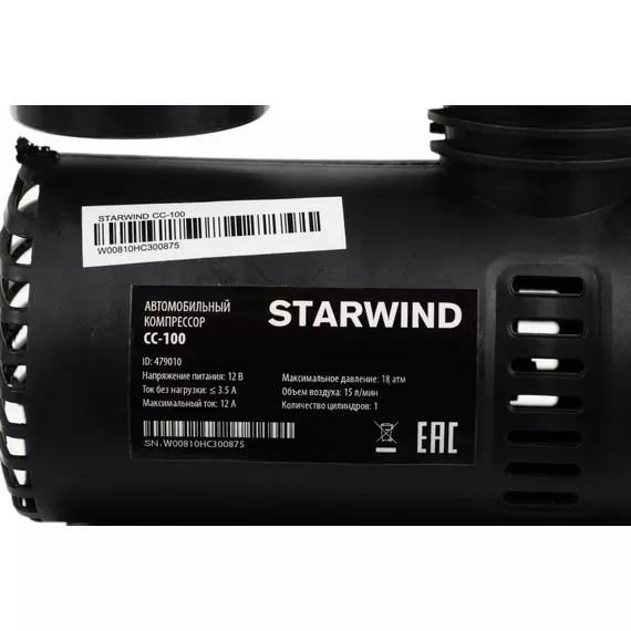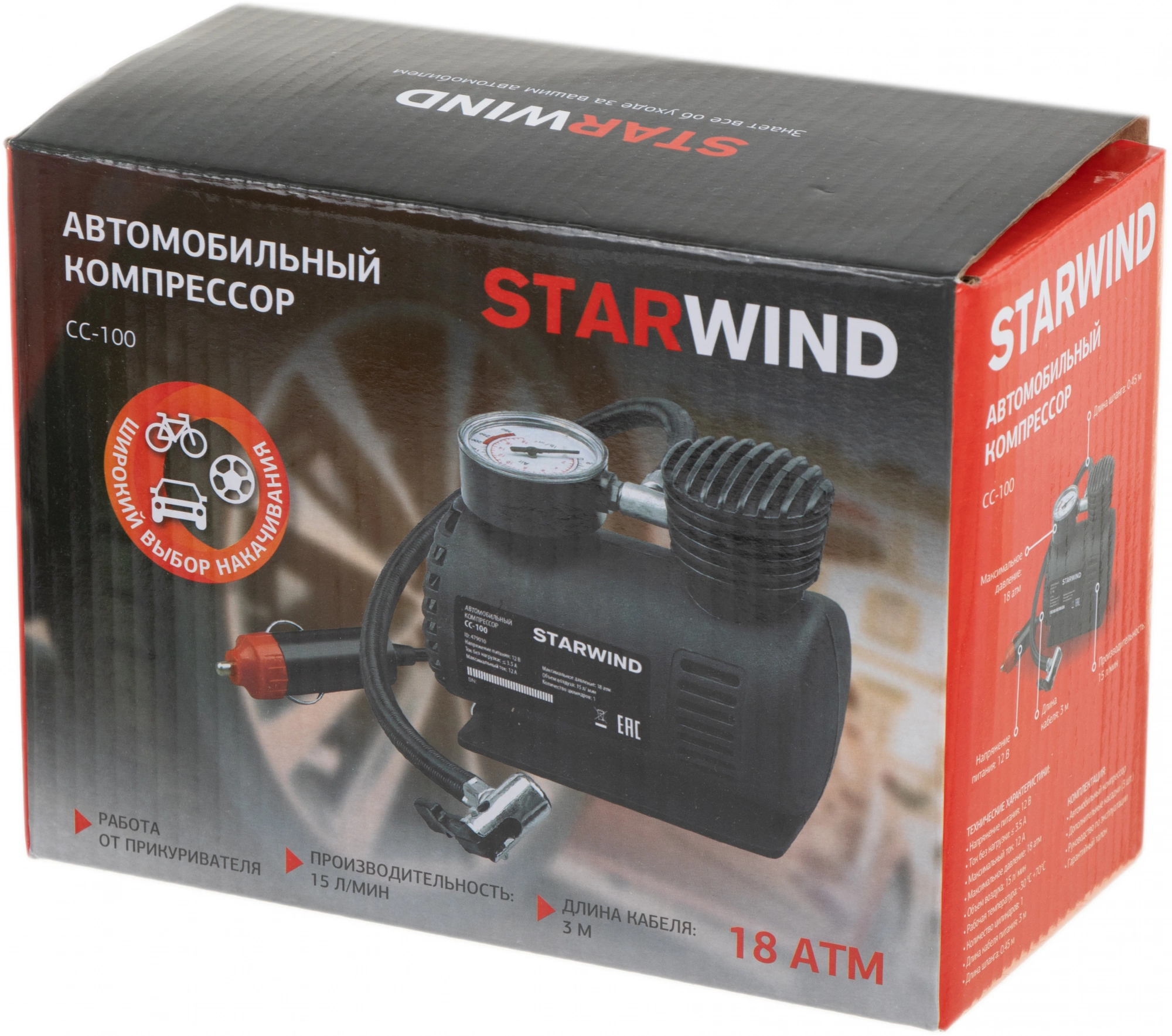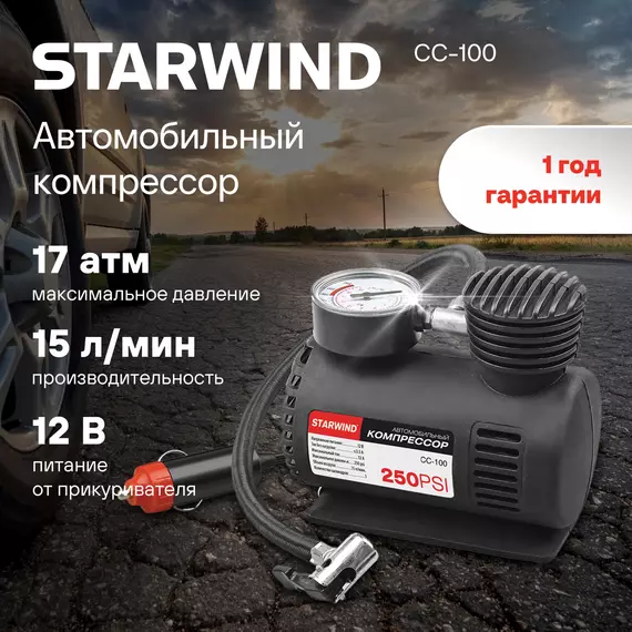 Автомобильный компрессор STARWIND CC-100 15л/мин шланг 0.45м