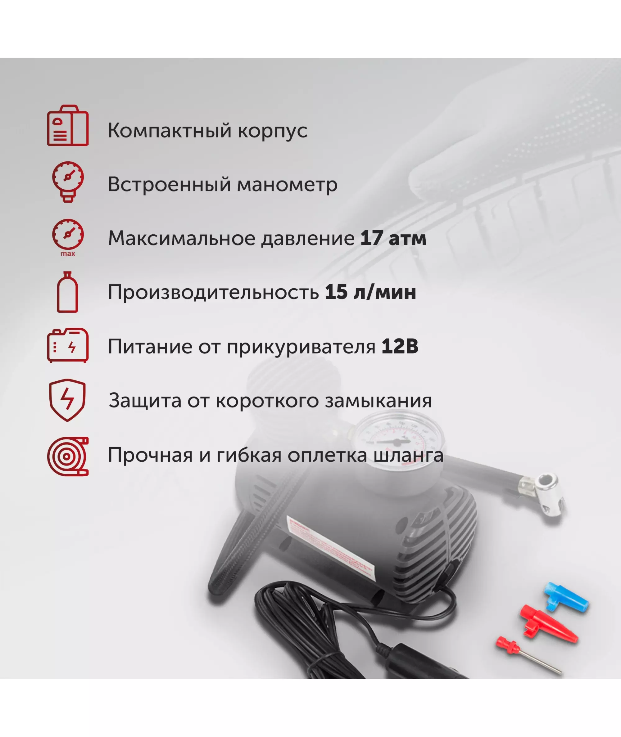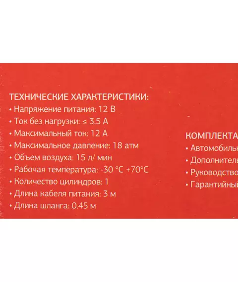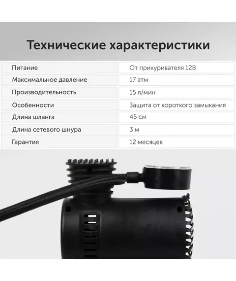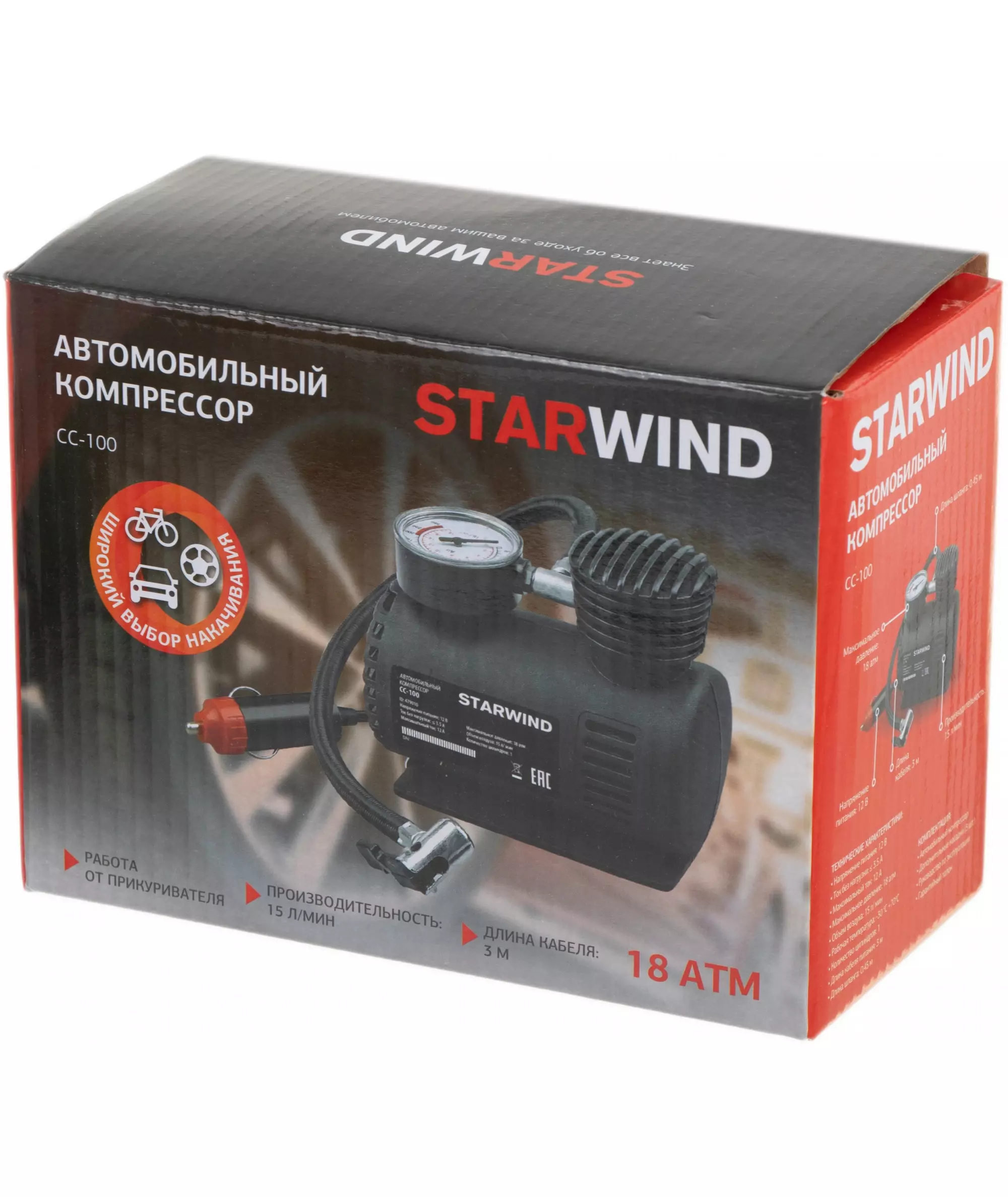 Автомобильный компрессор STARWIND CC-100 15л/мин шланг 0.45м
