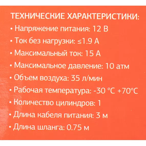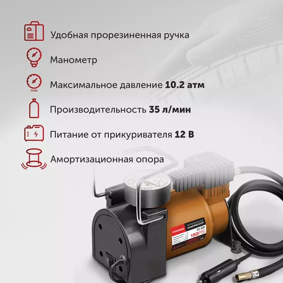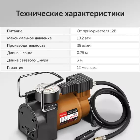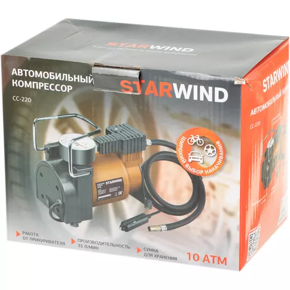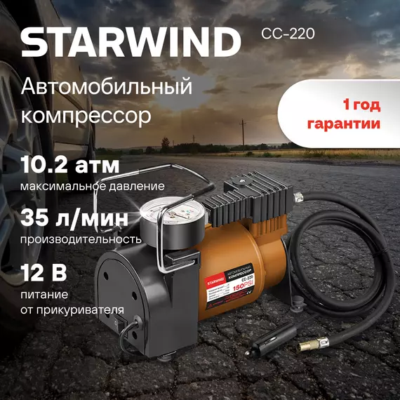 Автомобильный компрессор STARWIND CC-220 35л/мин шланг 0.75м