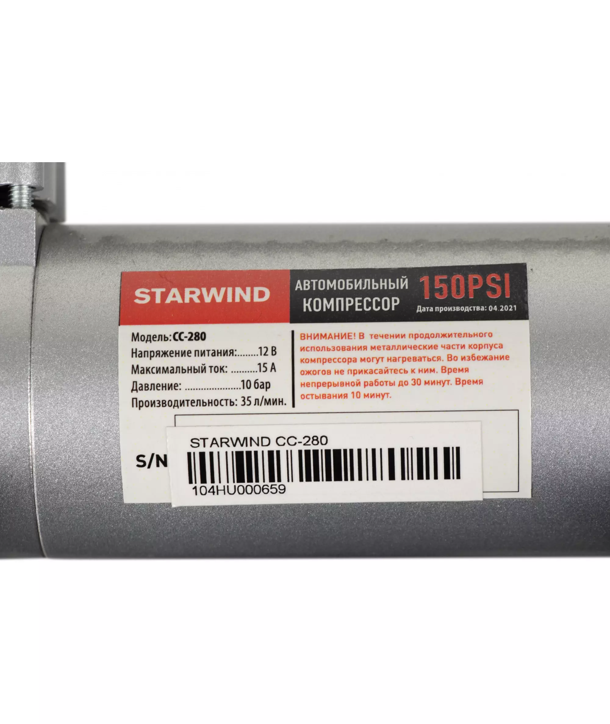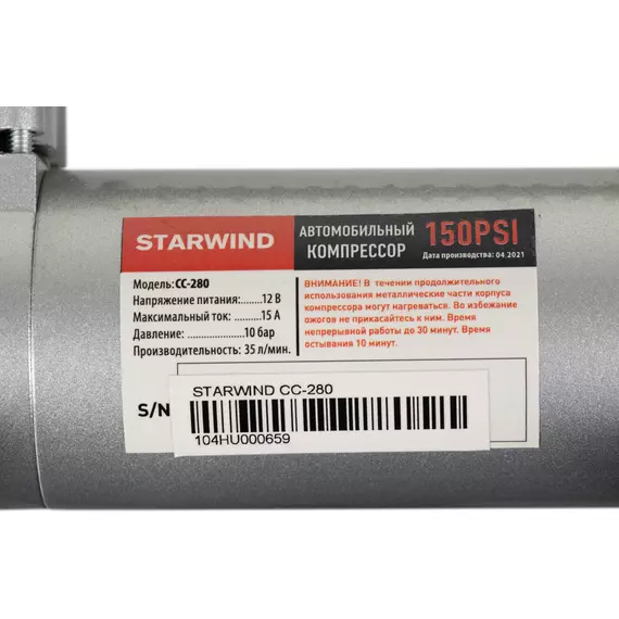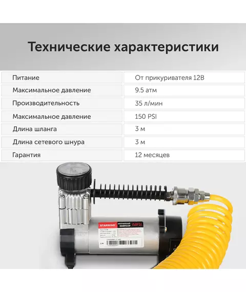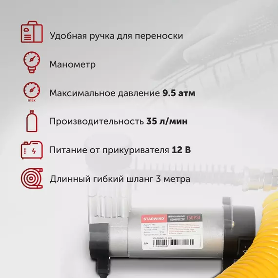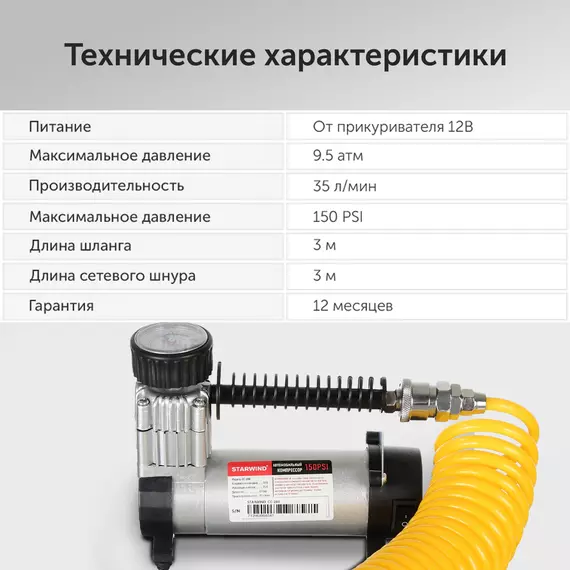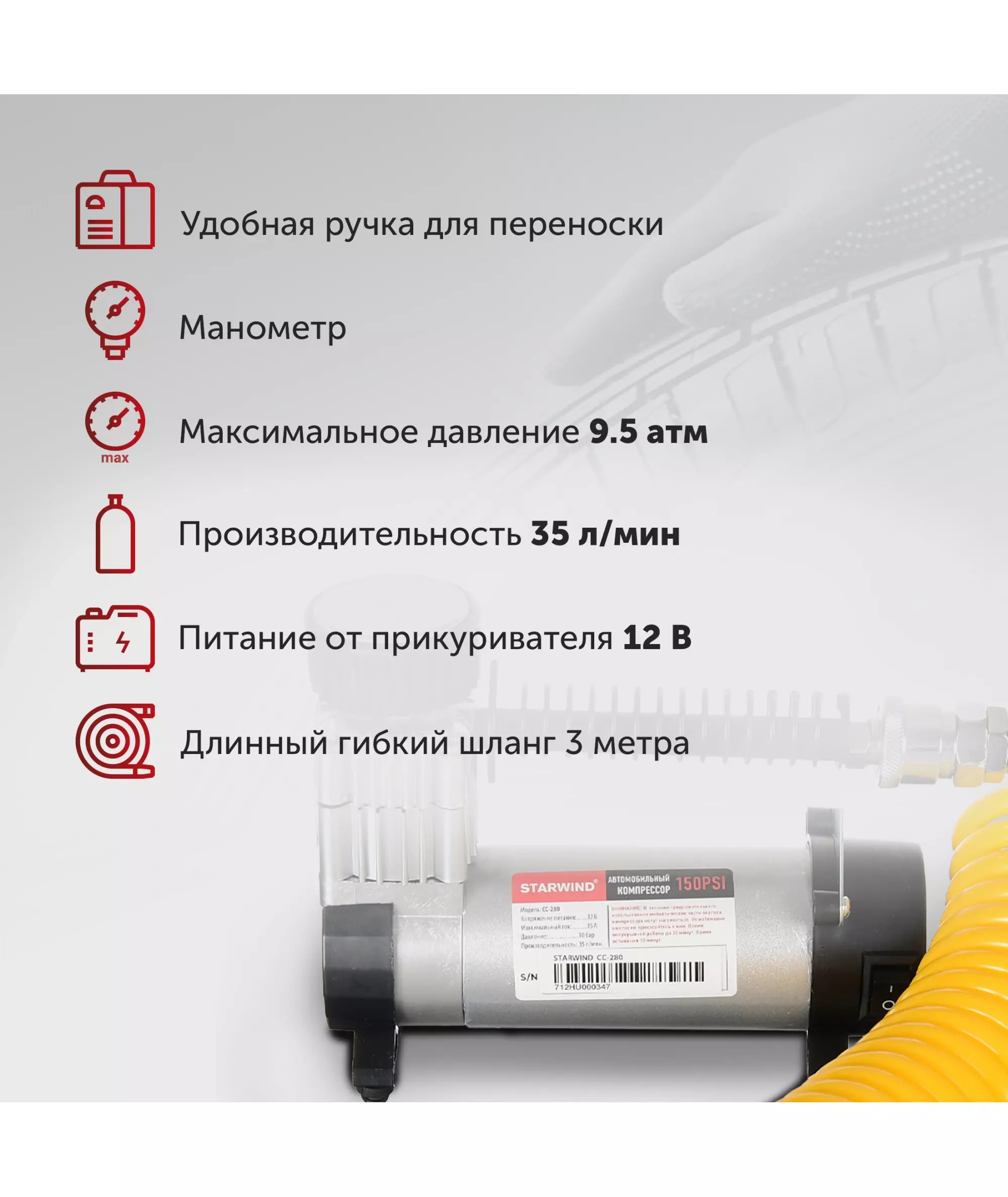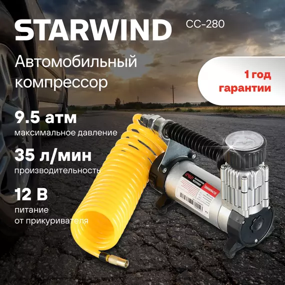 Автомобильный компрессор STARWIND CC-280 35л/мин шланг 3м