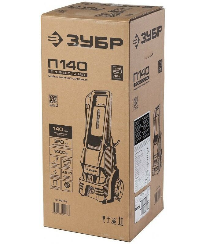 Мойка высокого давления Зубр Профессионал АВД-П140 макс. 140Атм, 350л/ч, 1400Вт, колеса, бесщет. двигатель, АВТО-СТОП, 5м шланг