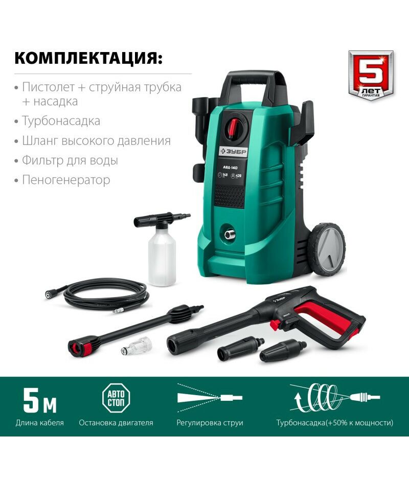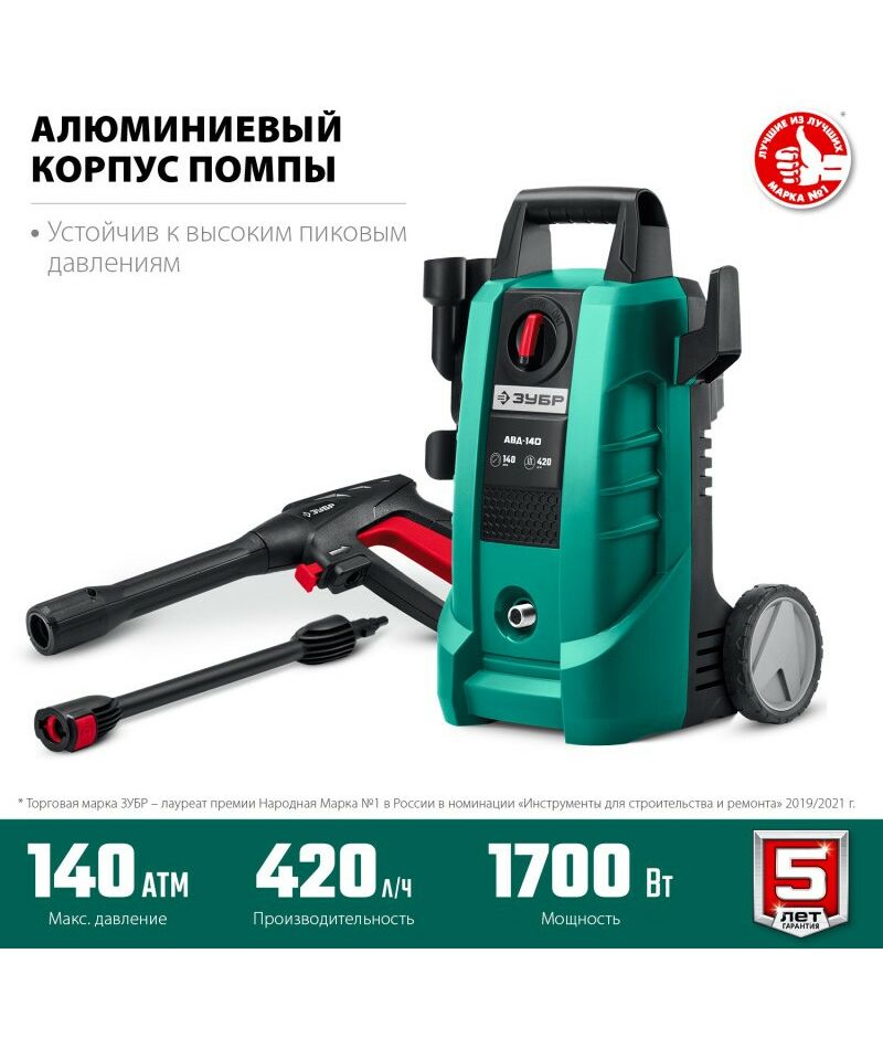 Мойка высокого давления Зубр АВД-140 140 Атм, 1700 Вт, пистолет МИГ-180