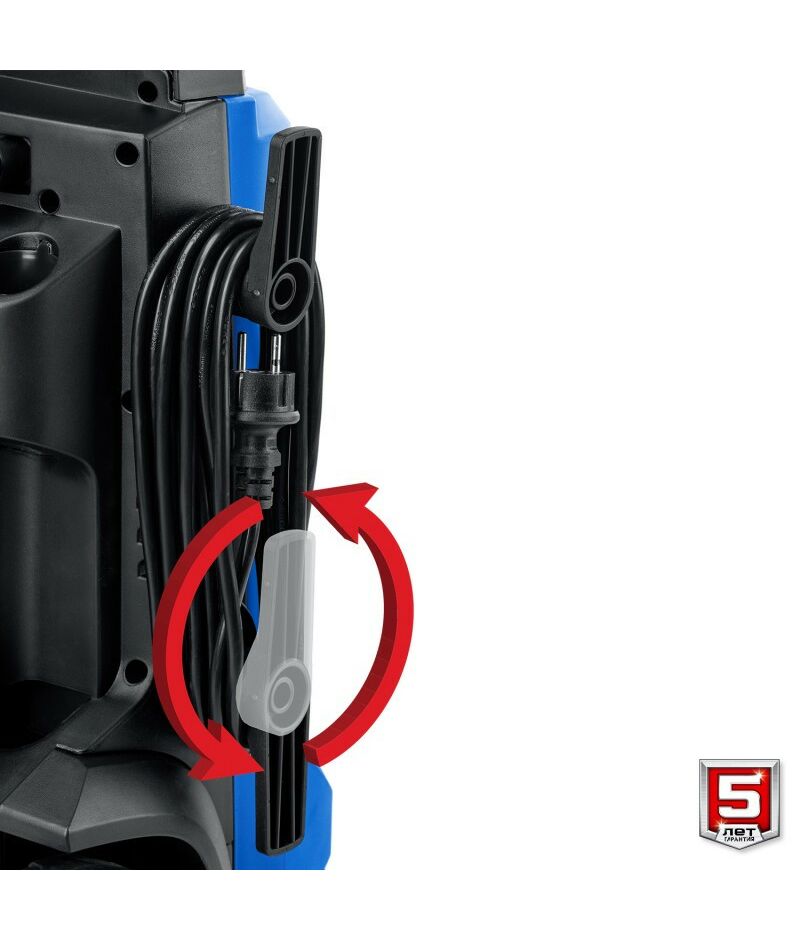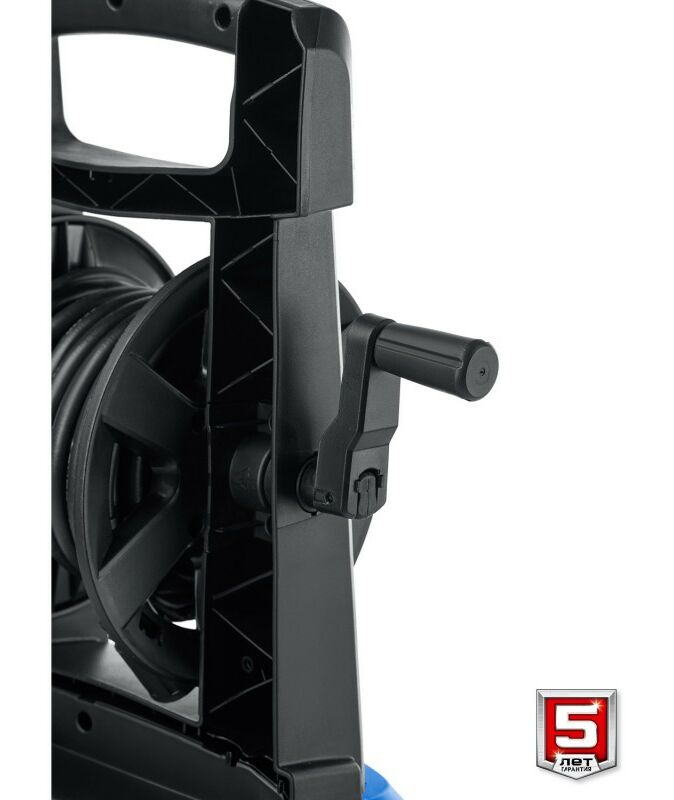 - Шланг длиной 8 м позволяет производить обработку без необходимости перемещать мойку