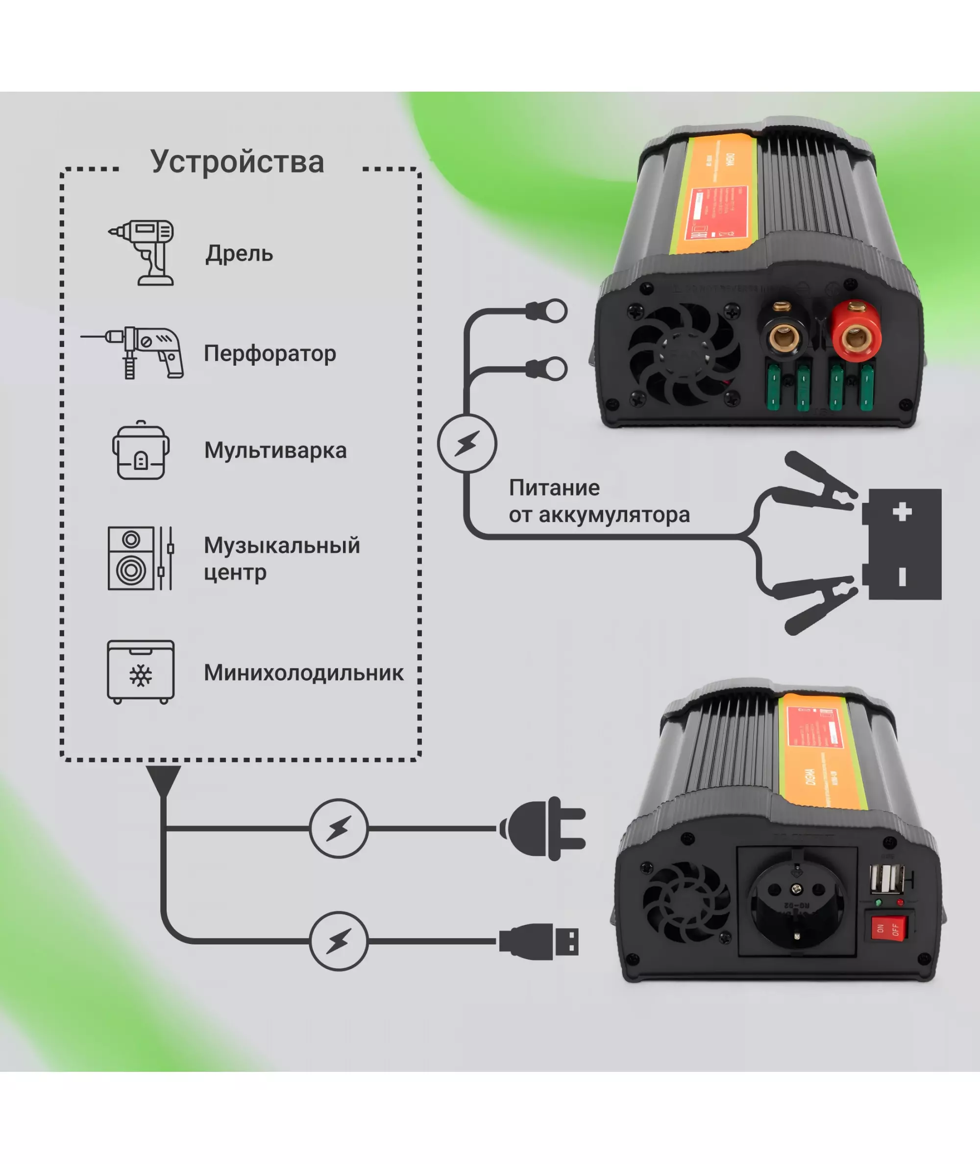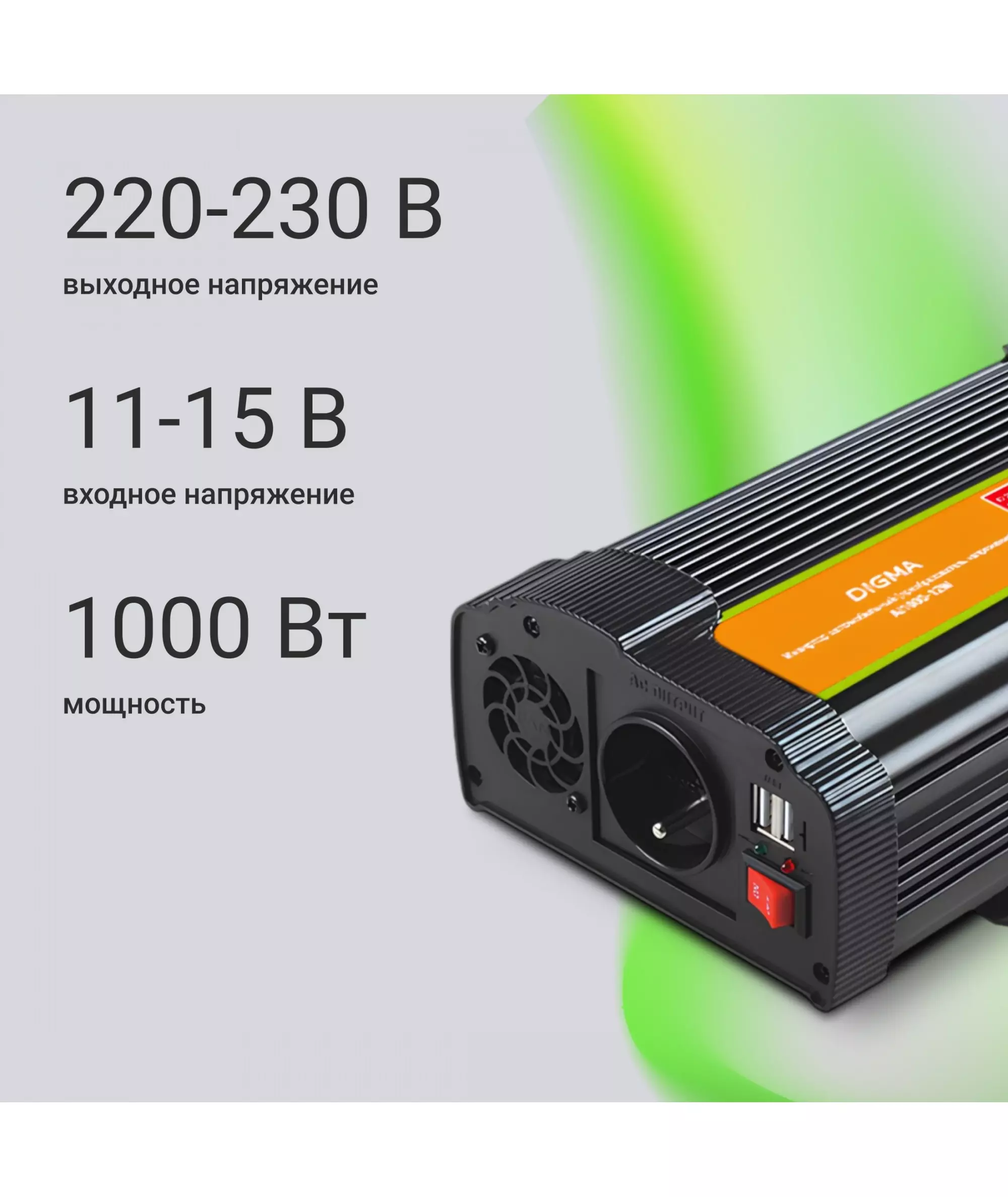 Автоинвертор Digma AI1000-12W 1000Вт