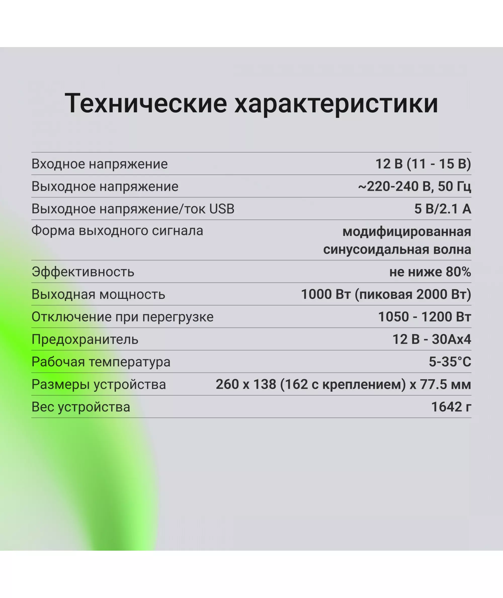 | Выходная мощность | 1000 Вт |