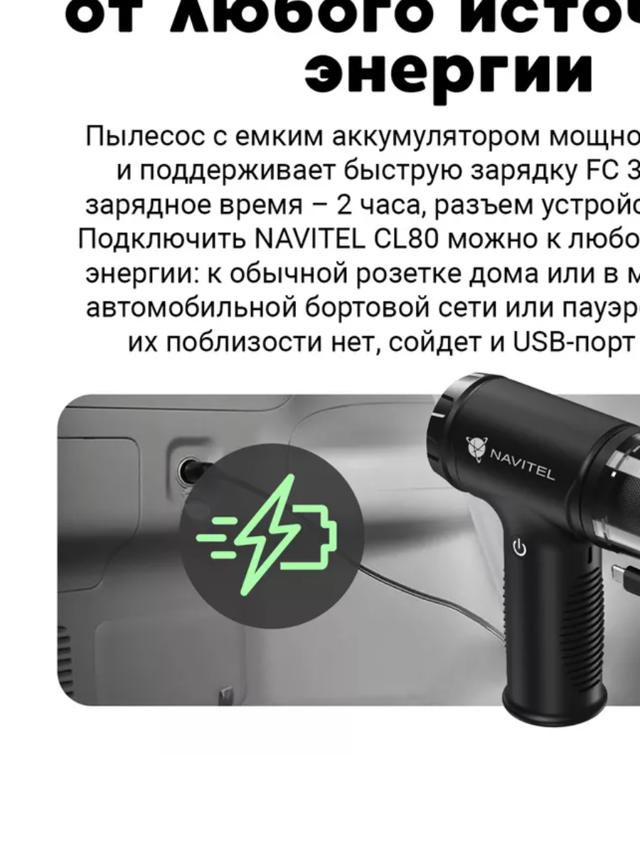 Пылесос автомобильный Navitel CL80 черный 80Вт