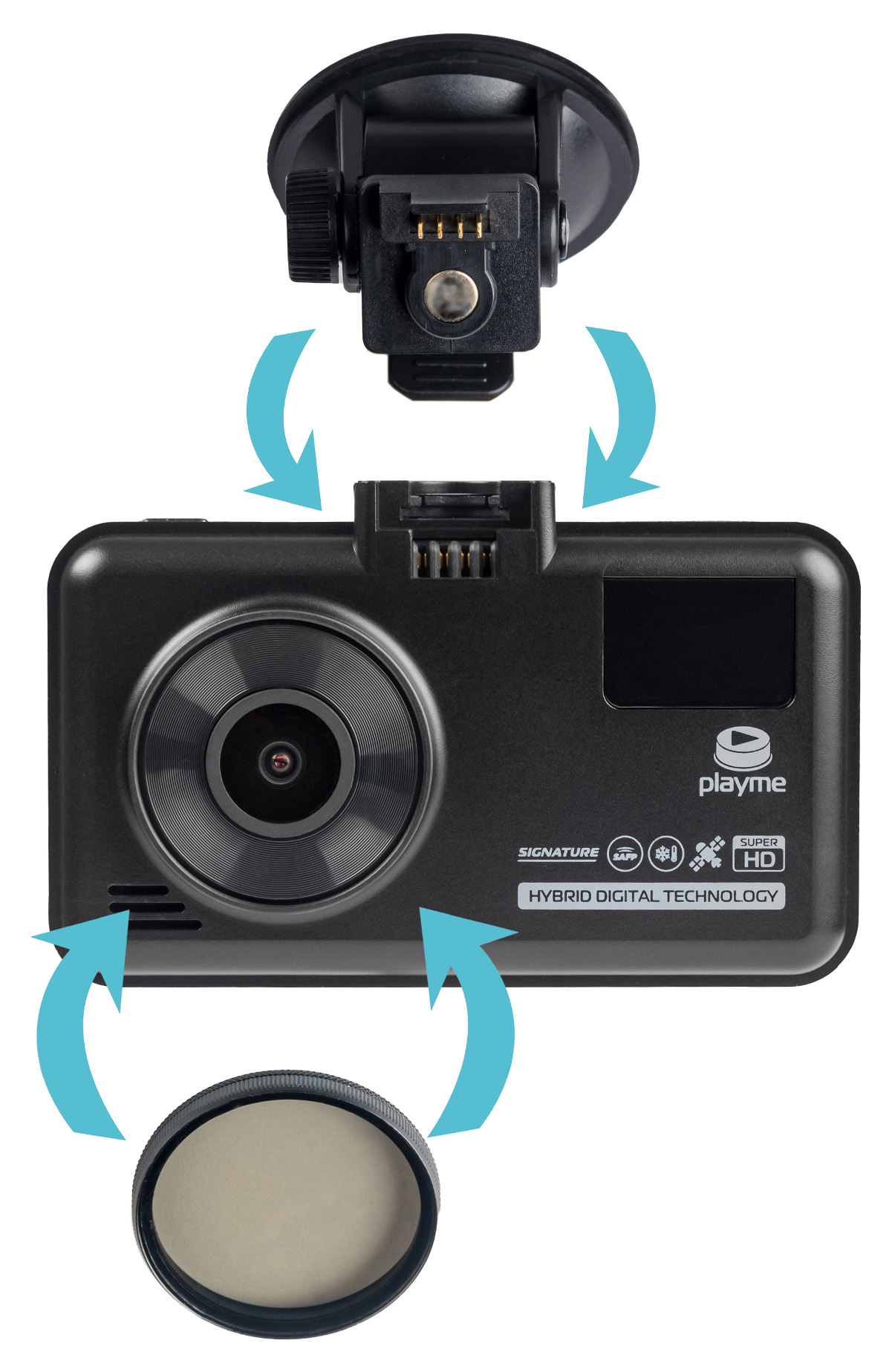 | Особенности | Поляризационный CPL-фильтр для устранения бликов, обновления базы данных и прошивки через смартфон, устойчив к низким температурам, режим SMART для автоматического изменения чувствительности радар-детектора, система фильтрации помех SAFP для комфортной езды |