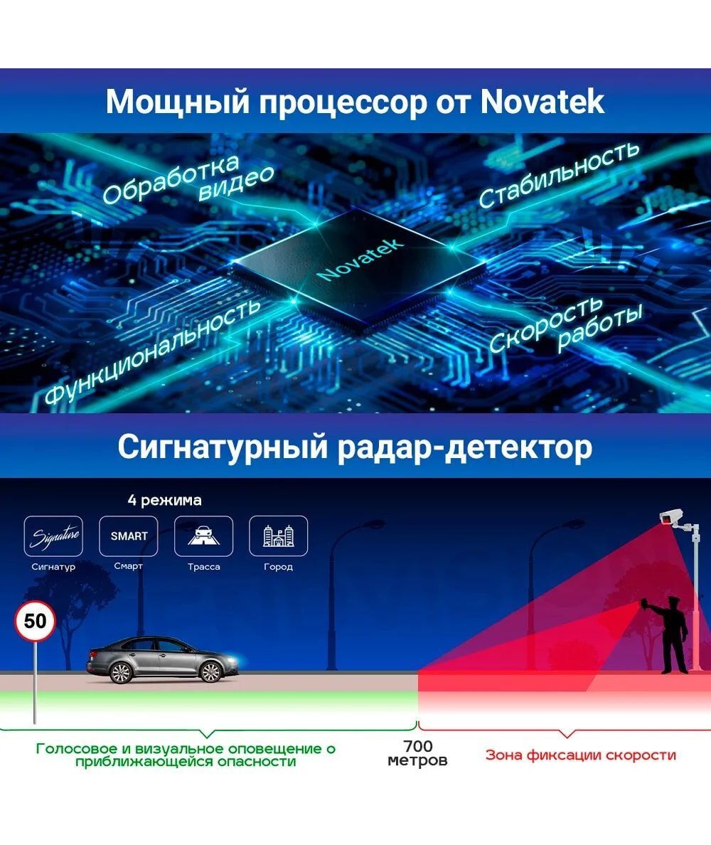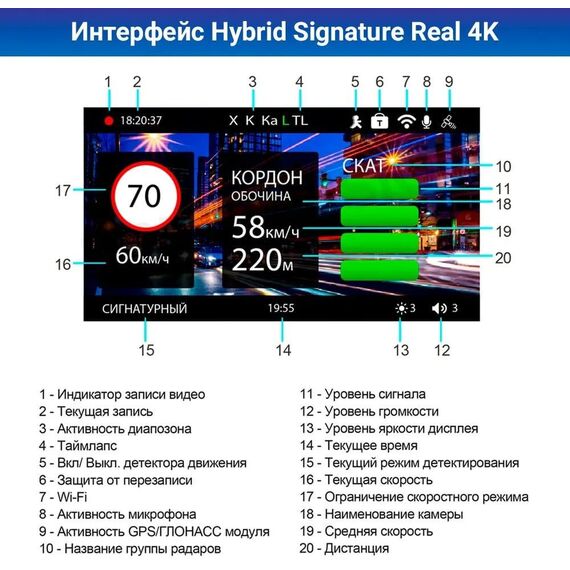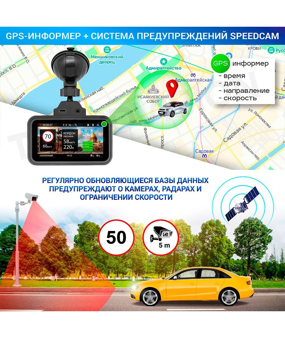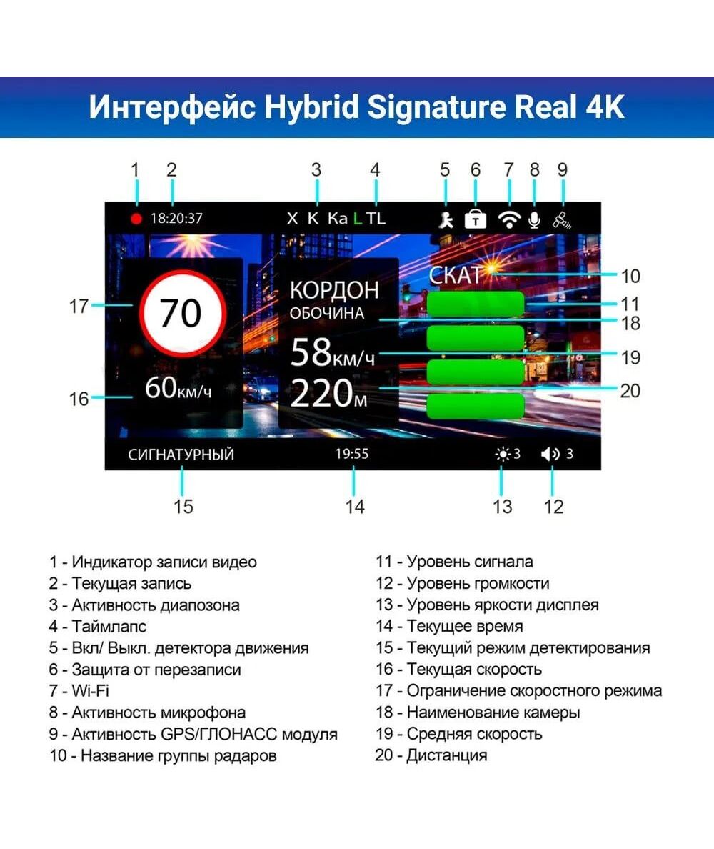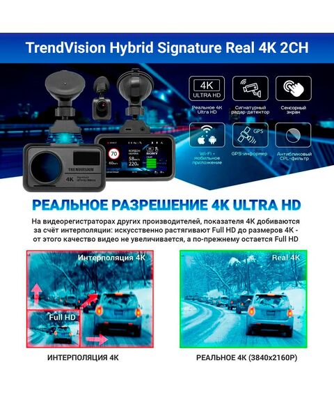 Видеорегистратор с радар-детектором TrendVision Hybrid Signature Real 4K 2CH GPS ГЛОНАСС черный