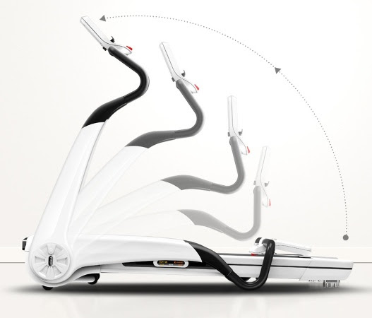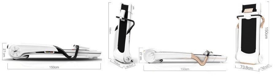 Беговые дорожки оснащены уникальной системой складывания, которая существенно экономит полезное пространство в вашей квартире. Занимаемая площадь беговой дорожки в сложенном виде в 2-3 раза меньше по сравнению с беговыми дорожками с обычной системой складывания. Боковые стойки и консоль подвижные и позволяют сложить их в одной плоскости. Хранить и перемещать дорожки можно в любом удобном положении: горизонтальном либо вертикальном. Их можно хранить в шкафу, под кроватью, в кладовке, в нише или просто у стены, так как толщина дорожек в сложенном виде всего 27 см.