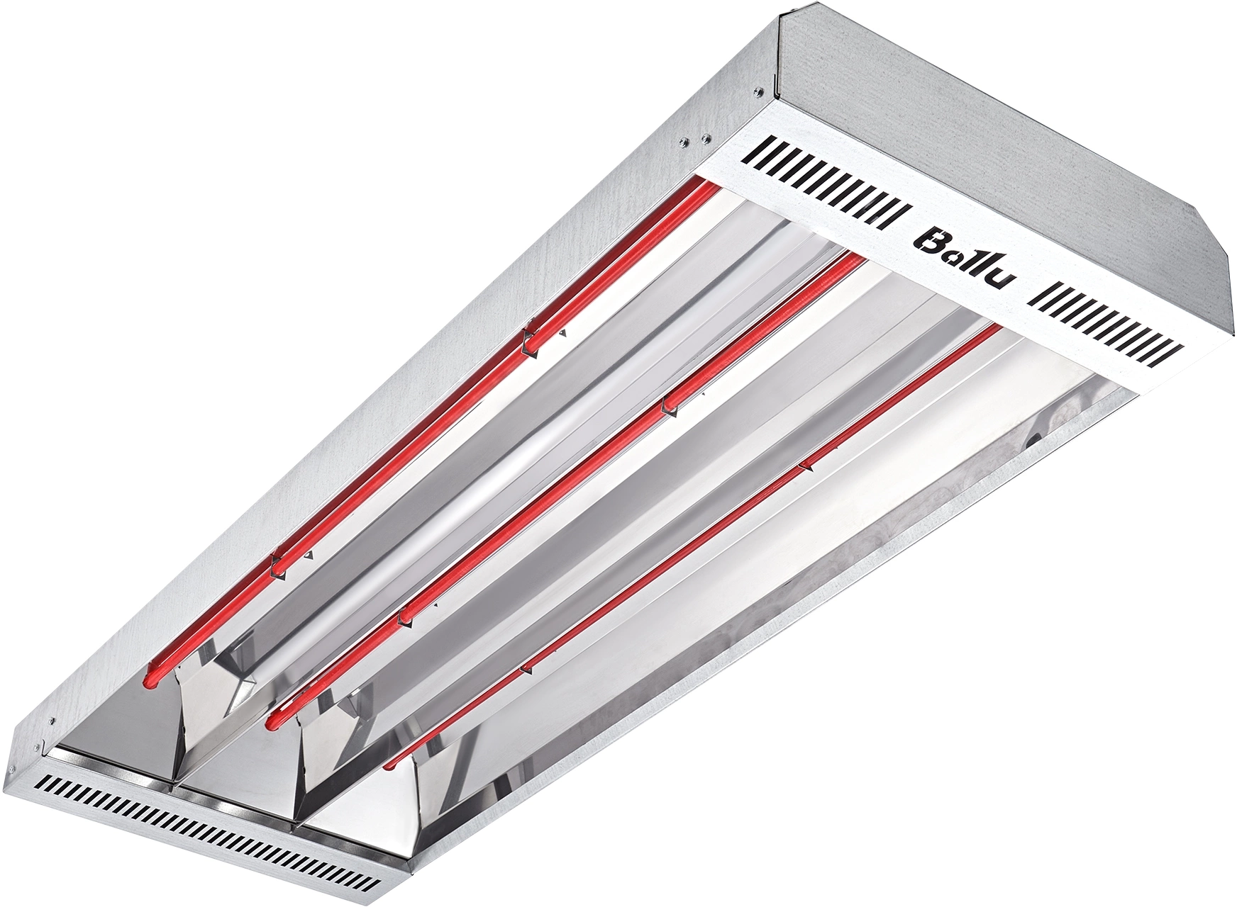 | Особенности | Инфракрасный обогреватель BIH-T2-4.5 – это сфокусированный интенсивный обогрев, IP54, ТЭНы с оболочкой из спецсплава Incoloy для долговременной эксплуатации в тяжёлых условиях (мороз, ветер). Поворотные кронштейны для потолка или стены, герметичный коммутационный блок. Высота установки – 4–15 м. |