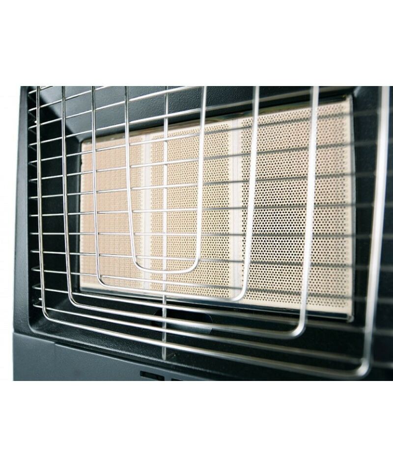 - Прибор функционирует в трех режимах мощности, обогревая помещения площадью до 60 м². Бесперебойная работа на протяжении многих лет достигается благодаря многоуровневой системе безопасности, в которую входит: защитная термопара для контроля пламени, датчики аварийного отключения при опрокидывании и превышении уровня углекислого газа. Кроме того, специальный фиксатор предотвращает случайное выпадение баллона при перемещении прибора