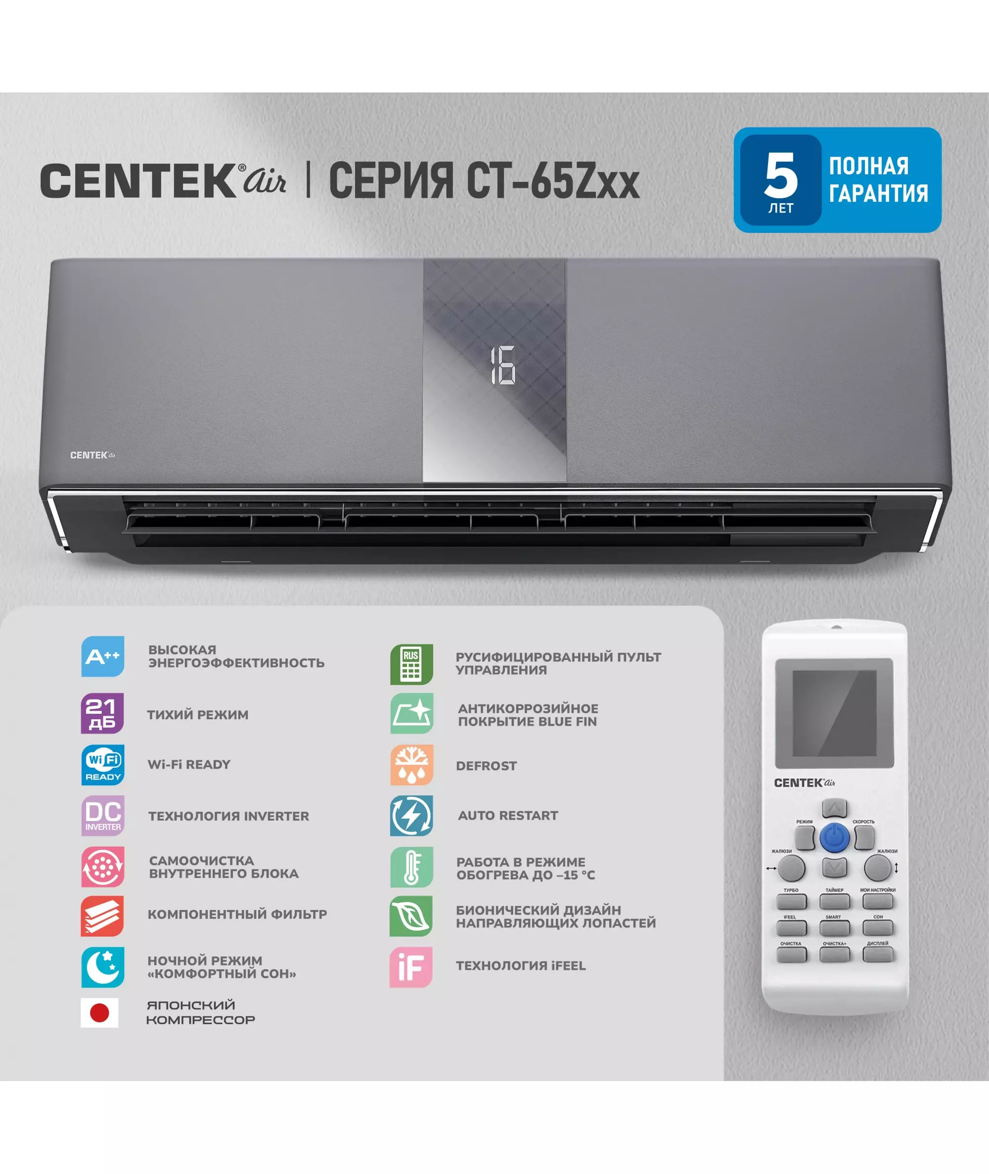 Сплит-система Centek CT-65Z18 серебристый