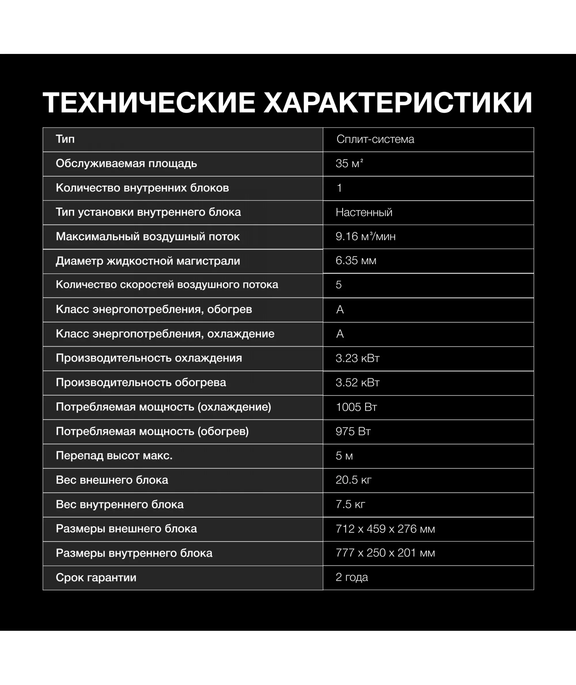 | Вес внешнего блока | 20.5 кг |