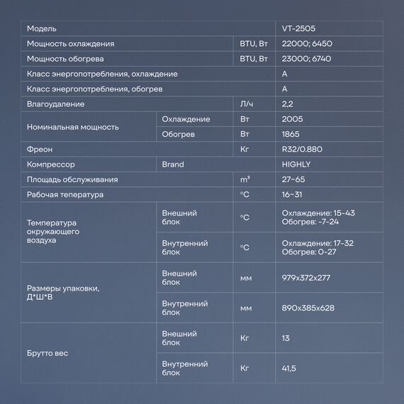 | Режимы работы | охлаждение/обогрев/вентиляция |
