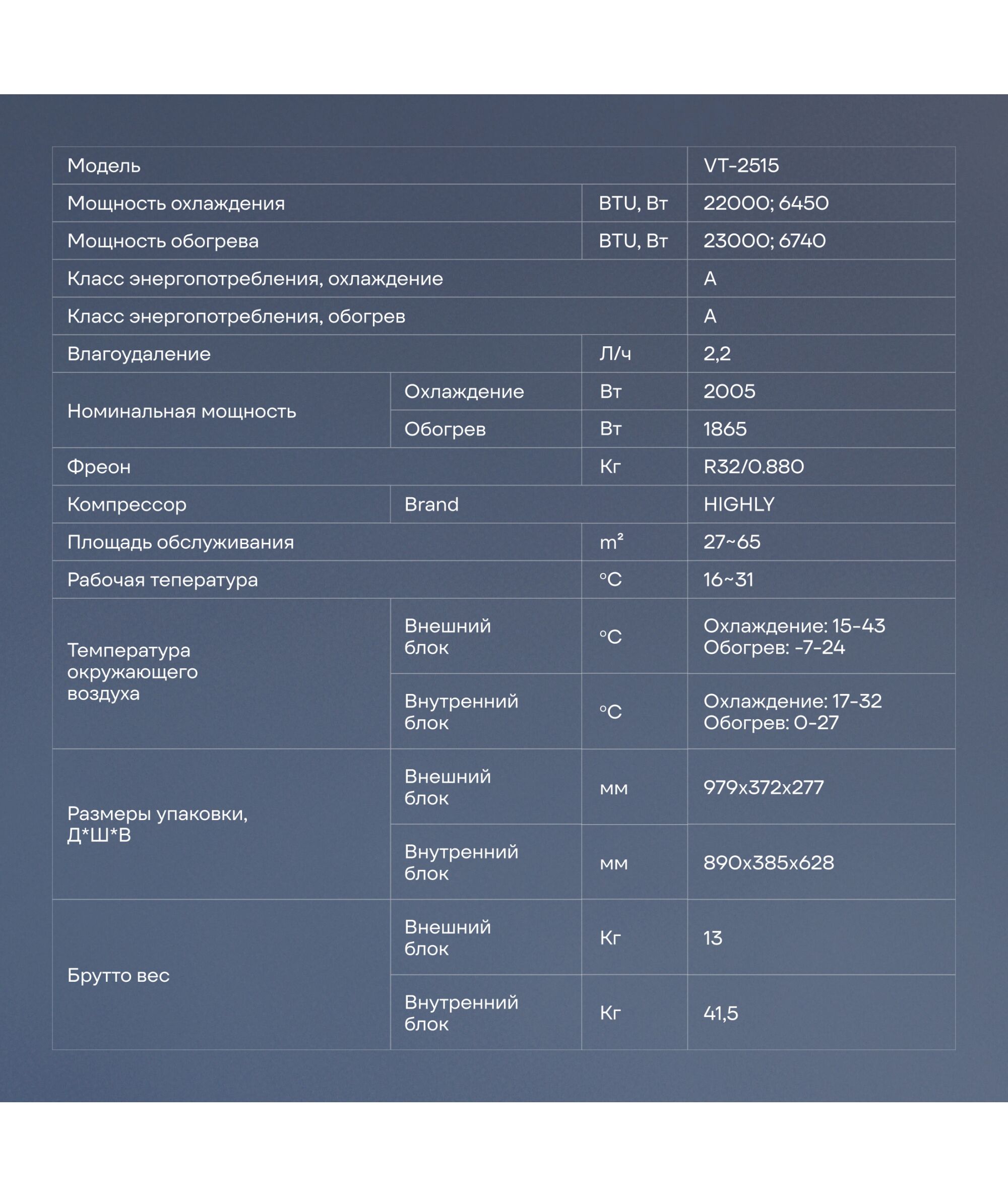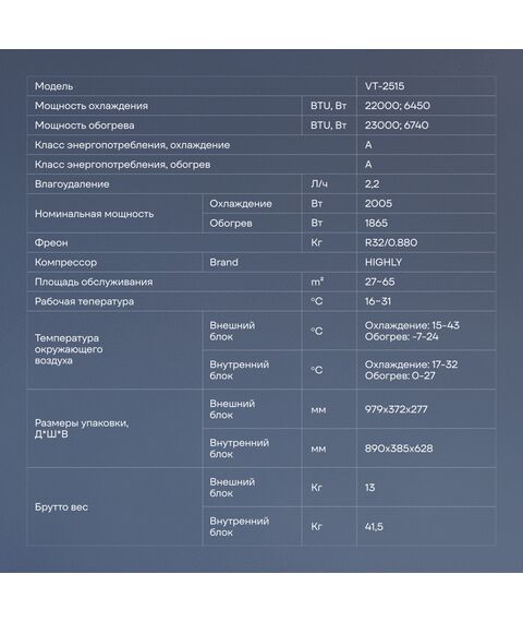 | Режимы работы | охлаждение/обогрев/вентиляция |