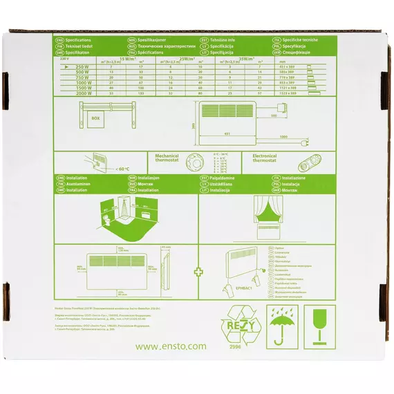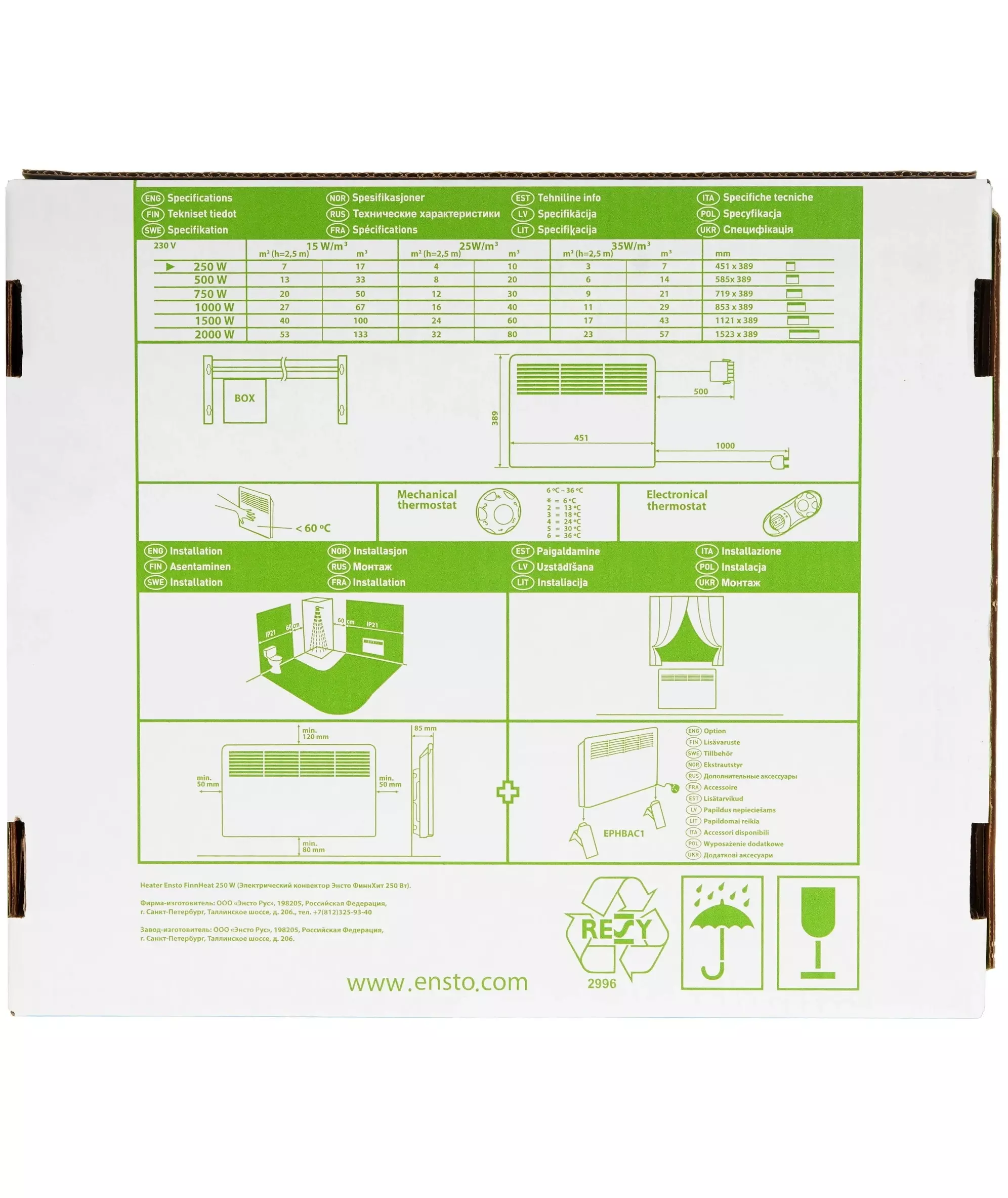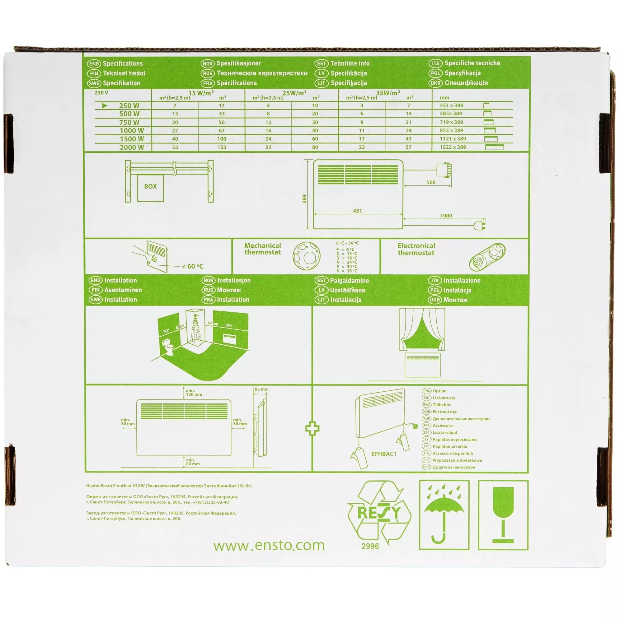 Конвектор Ensto EPHBM02PR 250Вт белый
