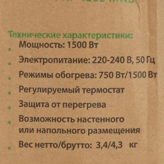| Класс защищенности обогревателя | IP20 |