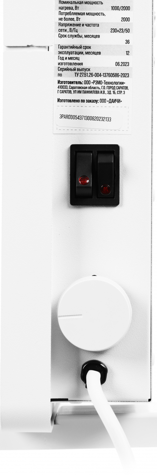 | Класс защищенности обогревателя | IP20 |