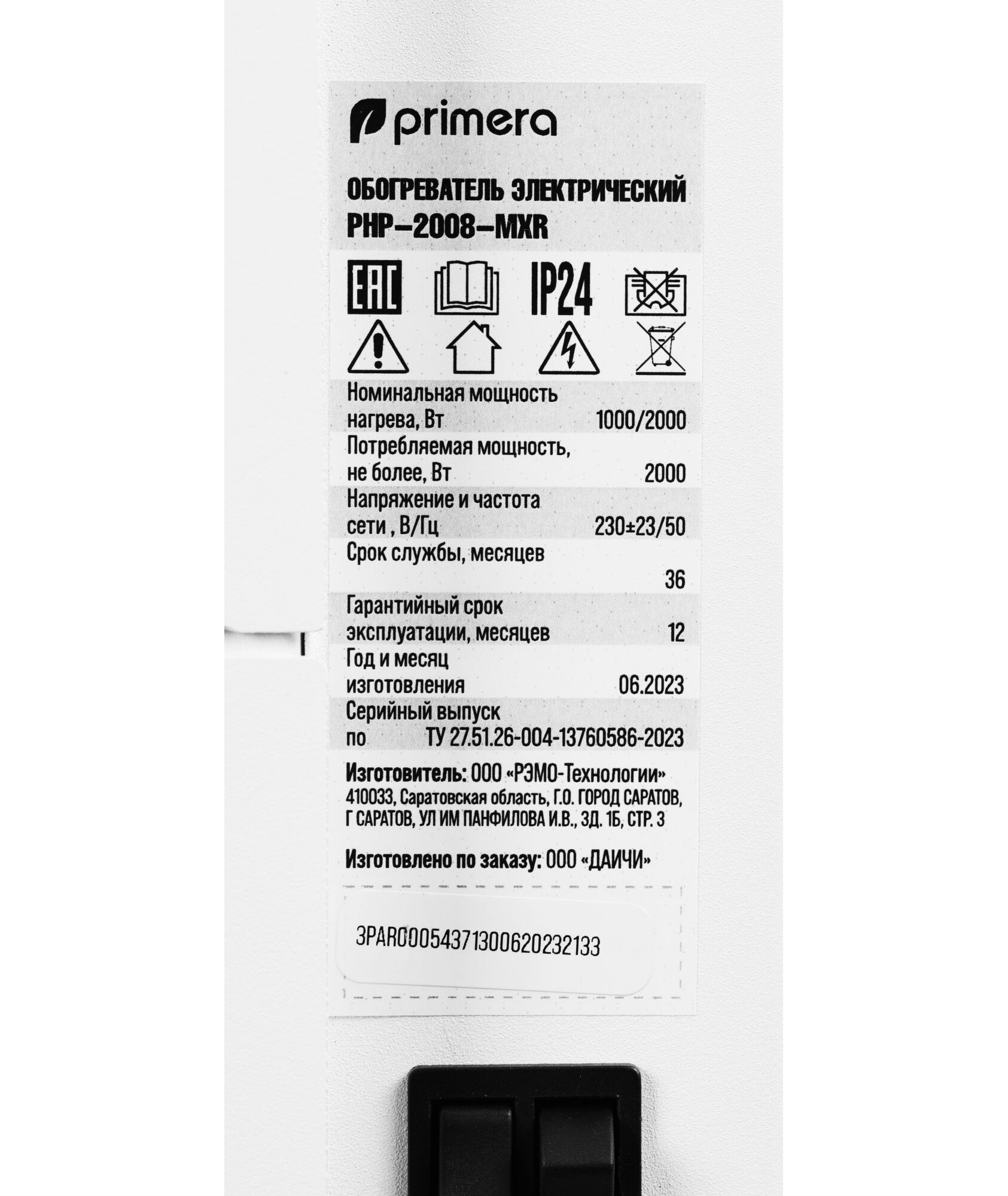 Конвектор Primera Ram PHP-2008-MXR 2000Вт белый