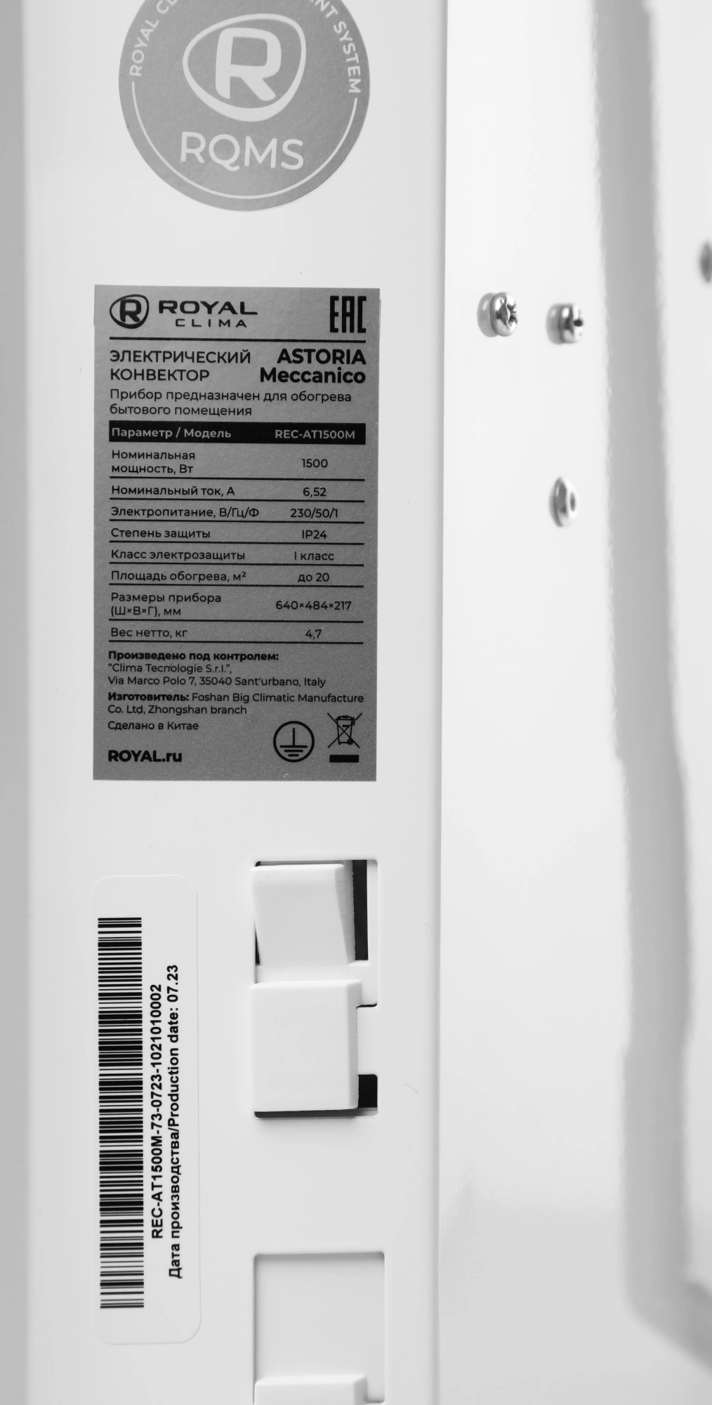 Конвектор Royal Clima REC-AT1500M Astoria Meccanico 1500Вт белый