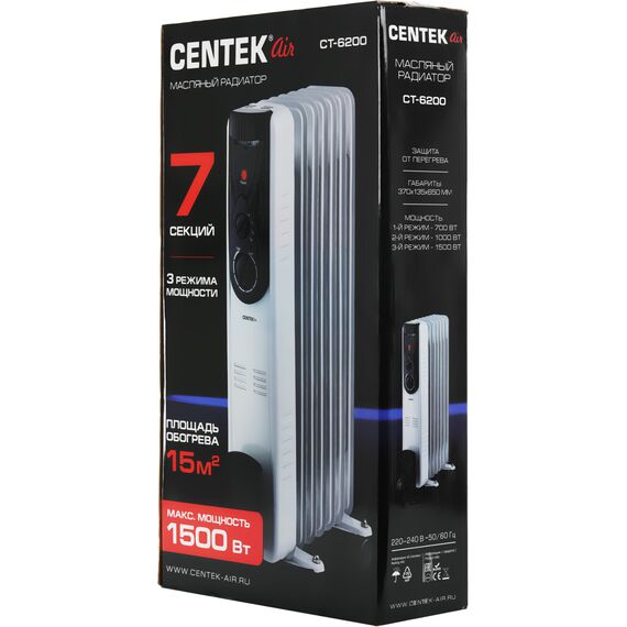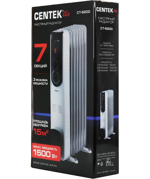 Радиатор масляный Centek CT-6200 1500Вт белый