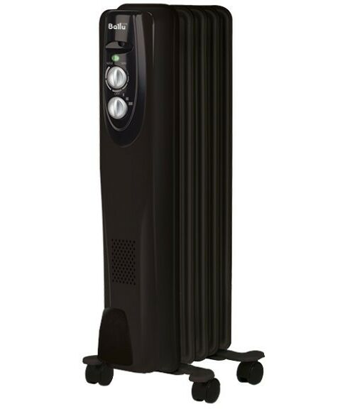 - Масляный радиатор Ballu BOH/CL-05BRN black исполнен в классическом дизайне с матовым черным покрытием. Модель оборудована 5 секциями, имеет мощность 1 кВт и три режима нагрева. Идеально подходит для помещений с площадью до 15 м²