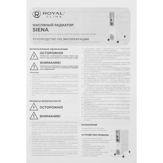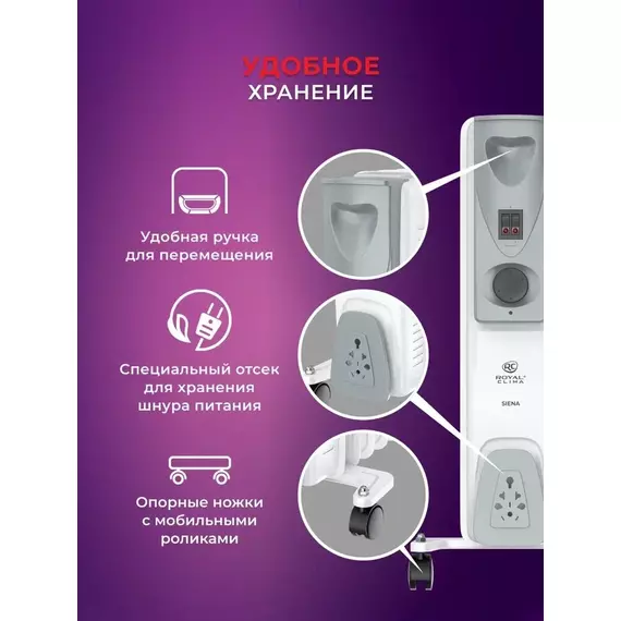 Радиатор масляный Royal Clima ROR-S5-1000M Siena 1000Вт белый/серый