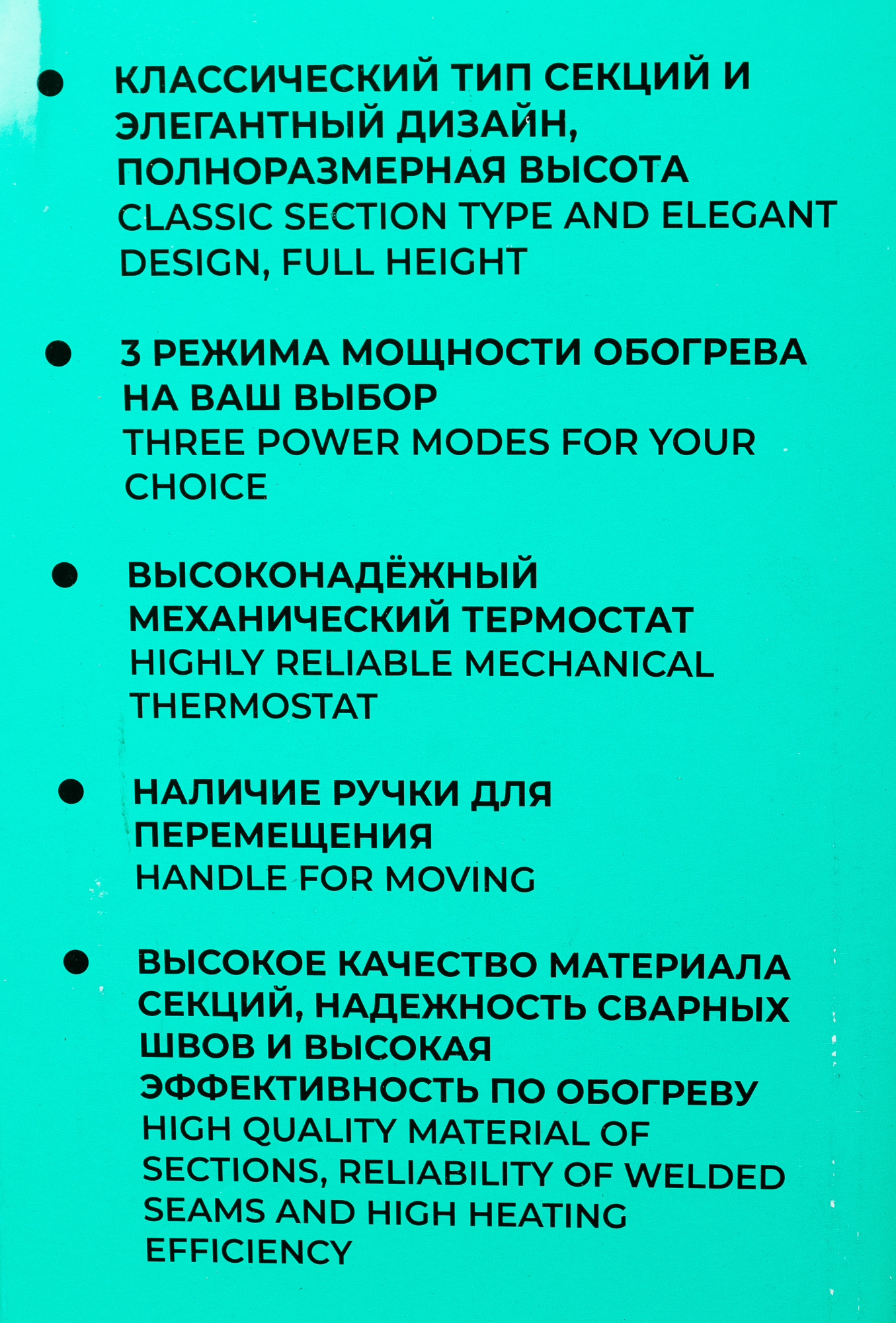| Особенности | Технология STEEL SAFETY – исключает проблему утечки масла и гарантирует высочайшую надежность маслонаполненных радиаторов. |