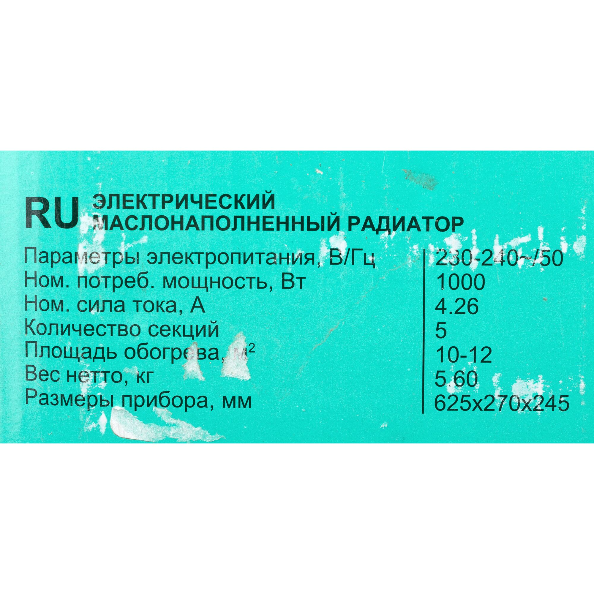 | Тип | Масляный радиатор |