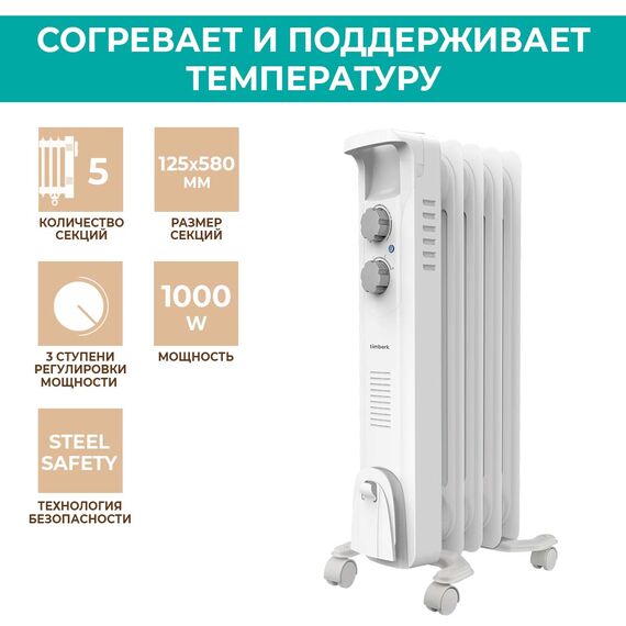 Радиатор масляный TIMBERK TOR 21.1005 BC 1000Вт белый